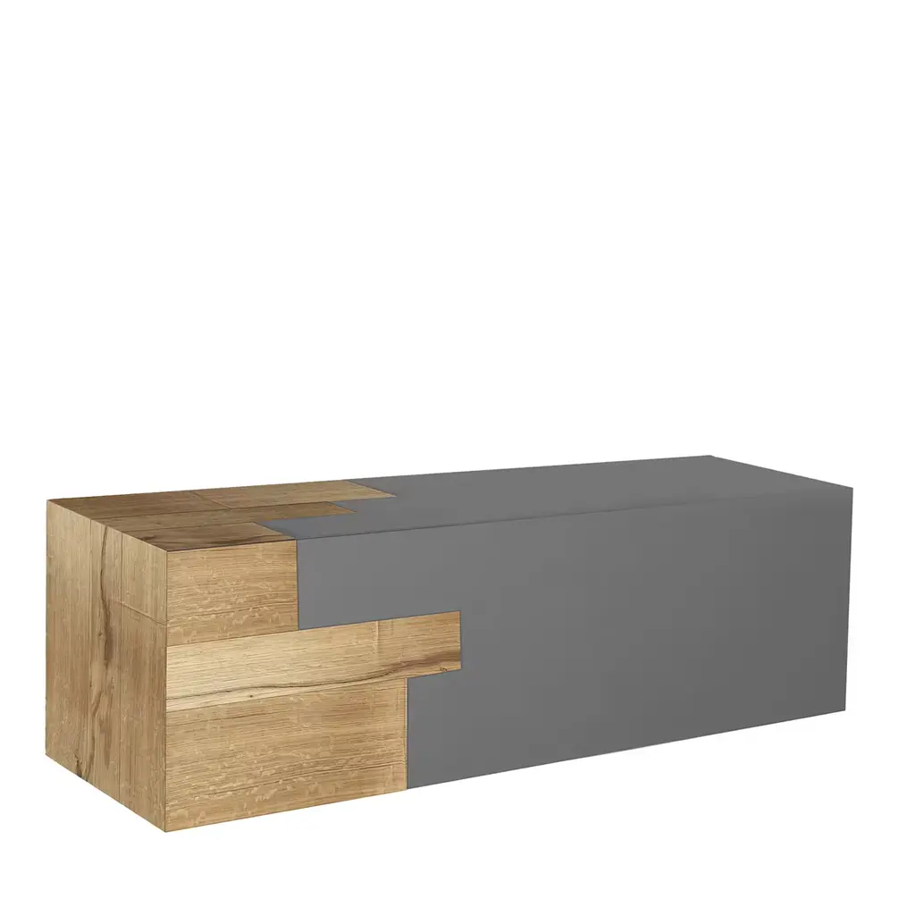 A small rhomboid-shaped table with storage space. Its simple shape renders it modular: by combining it with other identical elements, either moved around or rotated, numerous configurations can be obtained. The natural copper “skin” worked using the DeErosion technique creates a diagonal striped pattern that enhances the geometric shape and emphasises the graphic effect. Thanks to the measured proportions and the compositional possibilities, Alpha can fit into any environment and can be used in many different ways. The absence of tranparent varnishing means the antibacterial properties of the copper are preserved intact.Additional Information:Materials: CopperFinish: DeErosion copper H12Dimensions: W 90 x D 52 x H 35 cmAvailable in other finish options: Natural DeErosion copper H12N