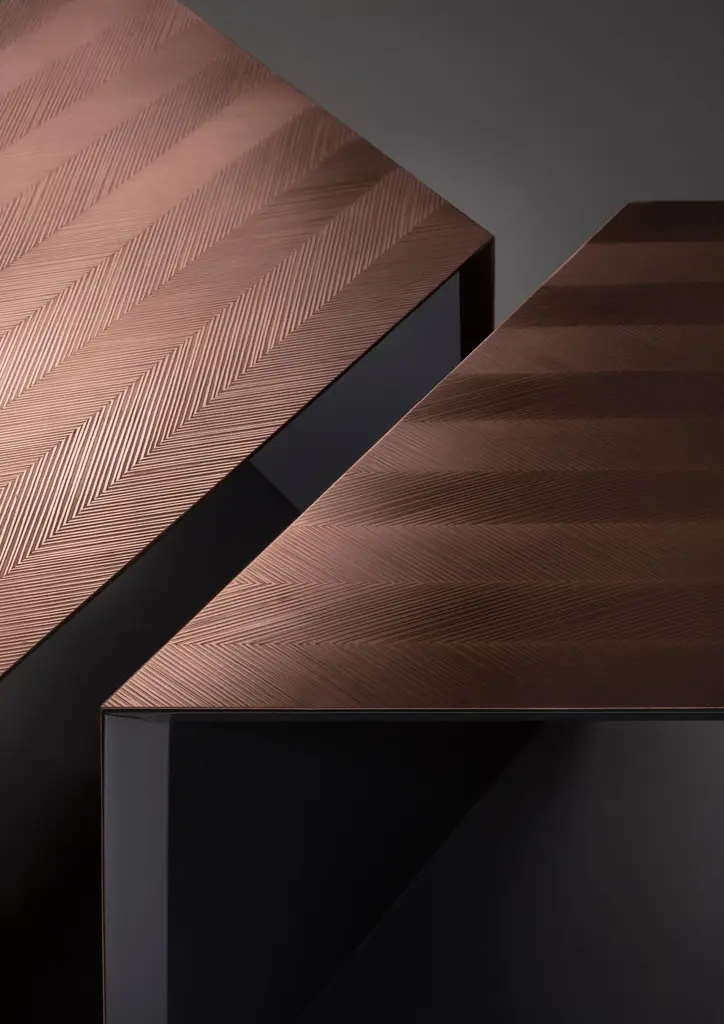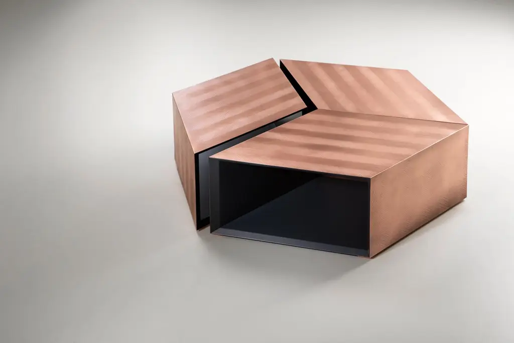 Decastelli Alpha Modular Coffee Table In Deerosion Copper By Martinelli Venezia