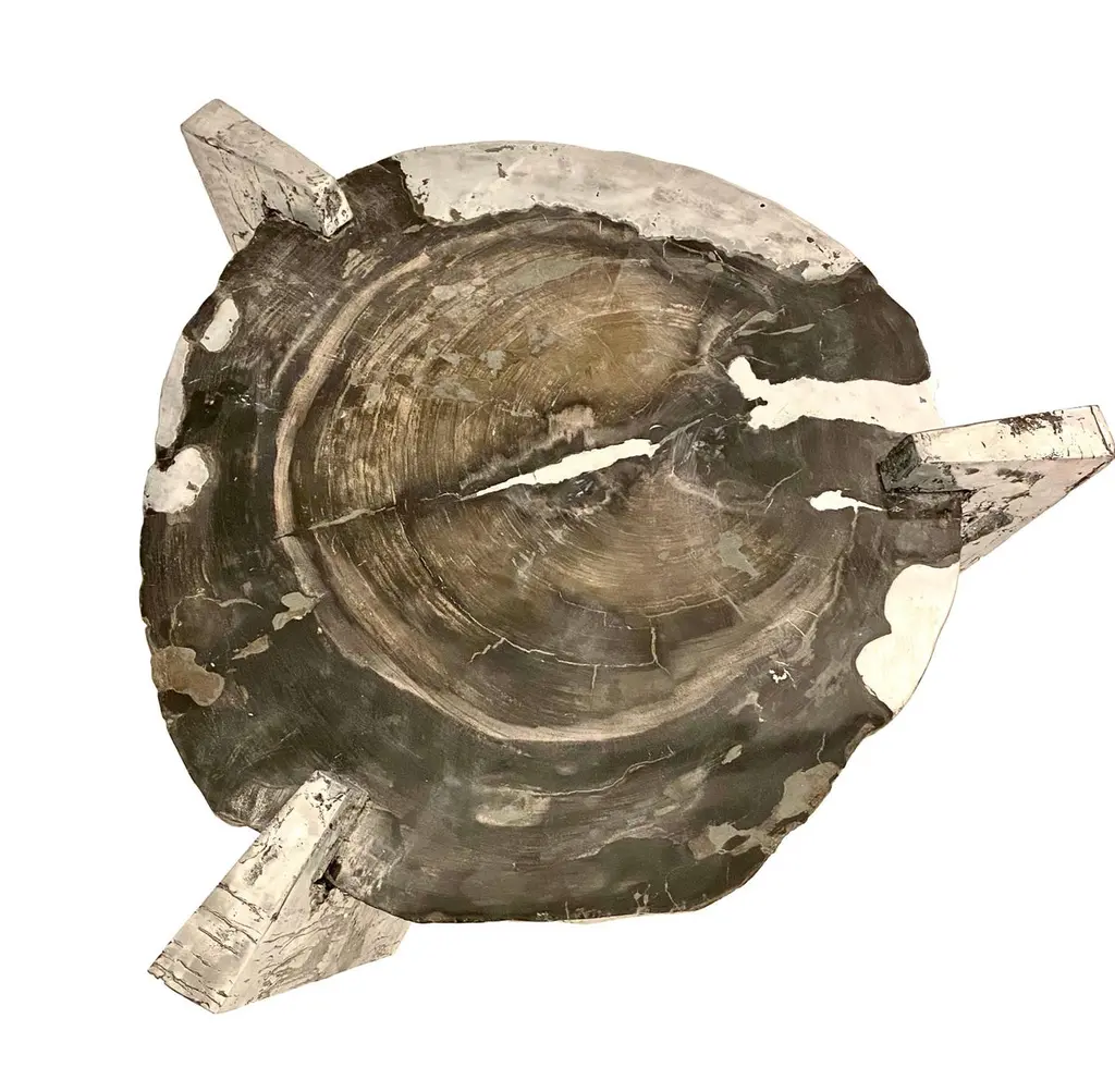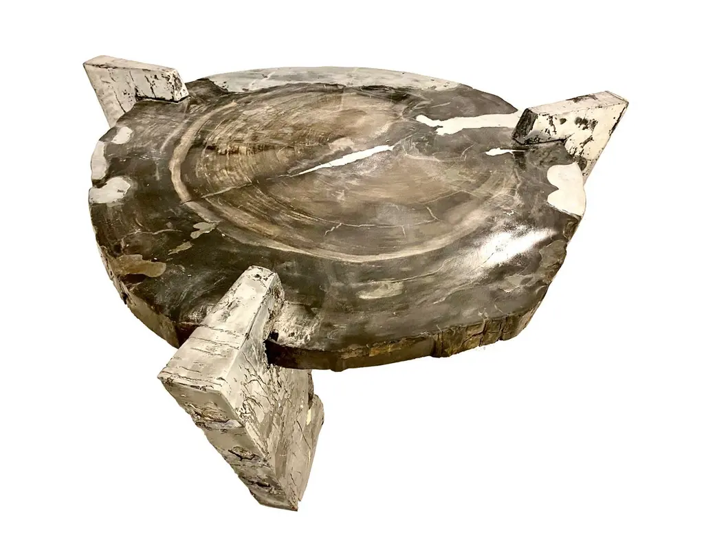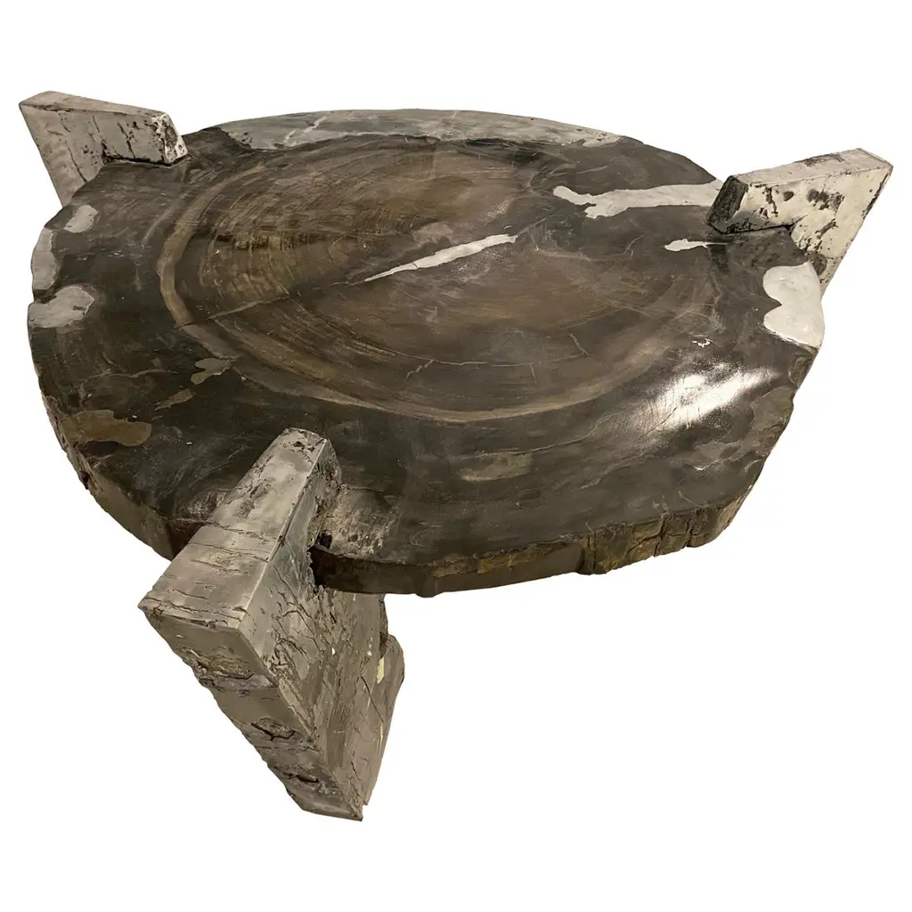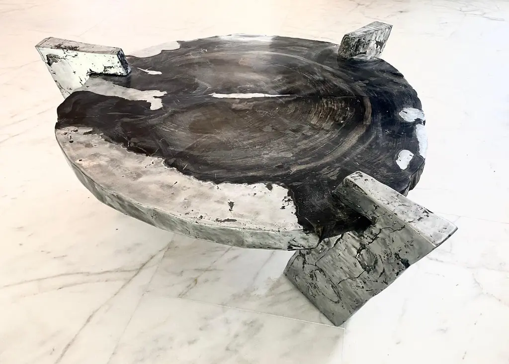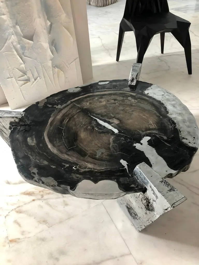 "Decay Of Time" Solid Zinc And Petrified Wood Circular Coffee Table