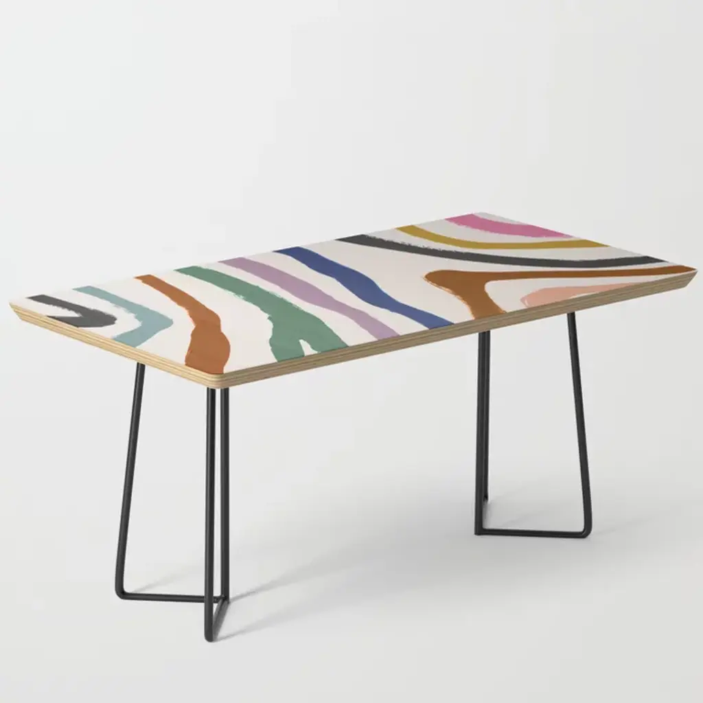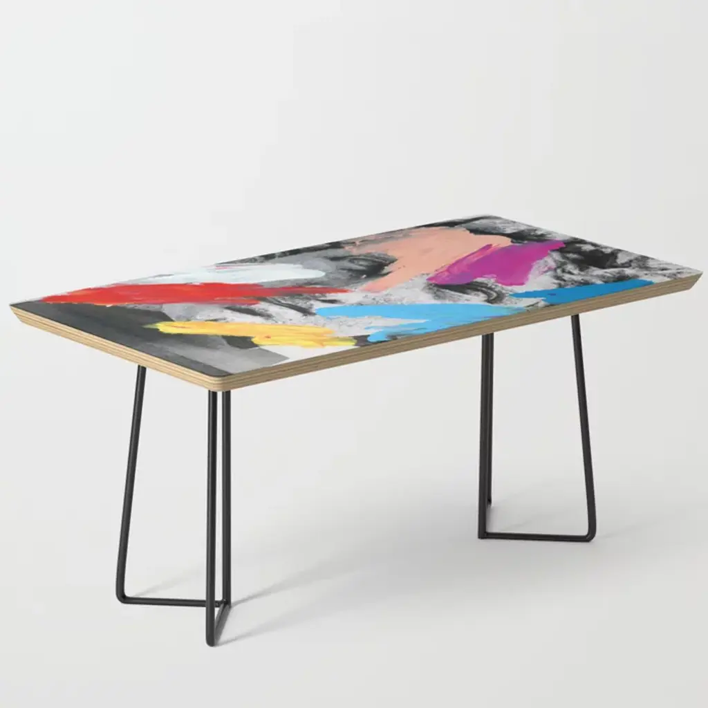35.75" x 17.75" x 17" (H)Baltic birch table top with beveled edgeHigh quality print with satin finishSteel legs available in black or goldAssembly requiredEvery order is made just for youSHIPPING: Items are made to order and typically ship within 3-4 business days. Click here for more information about delivery options.Furniture sales are final. Click here for more information on returns.
