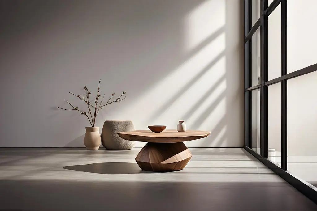 Designer Round Coffee Table Solace 33: Organic Shapes In Solid Wood