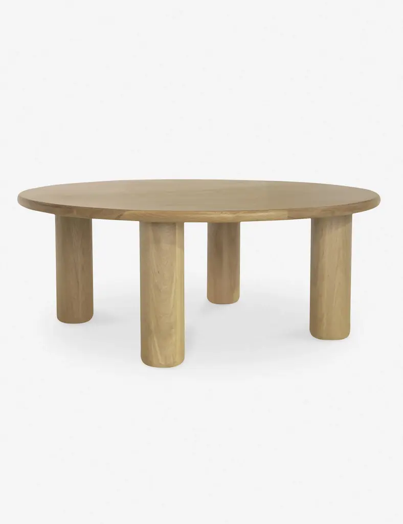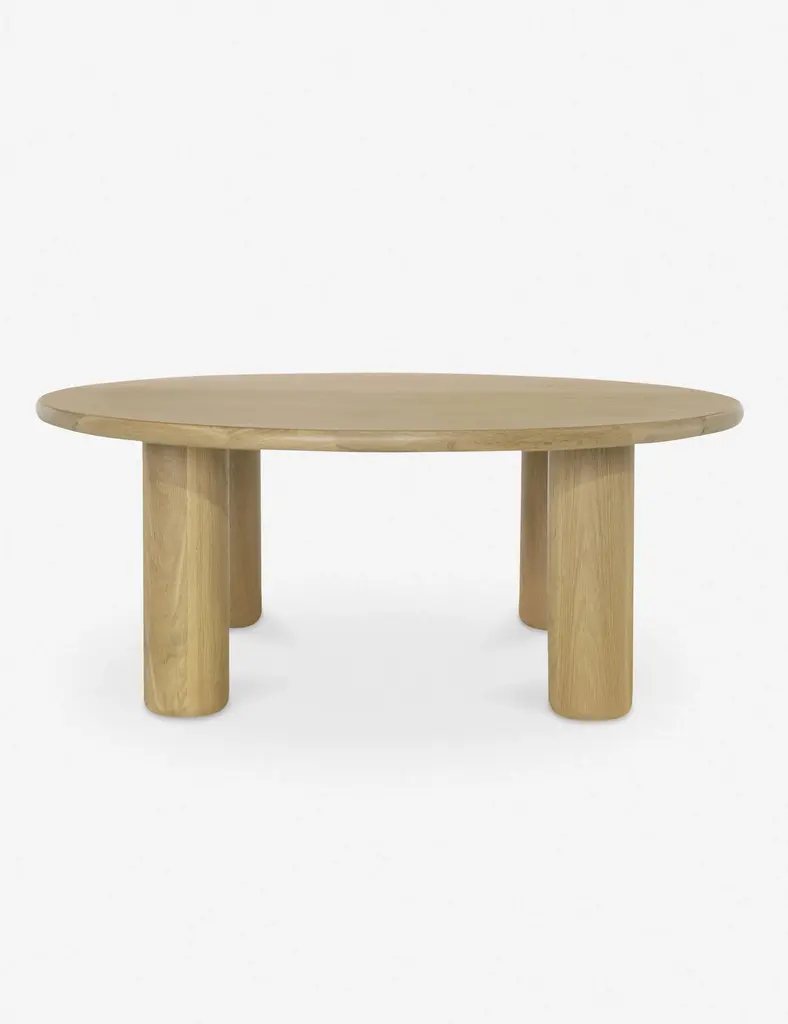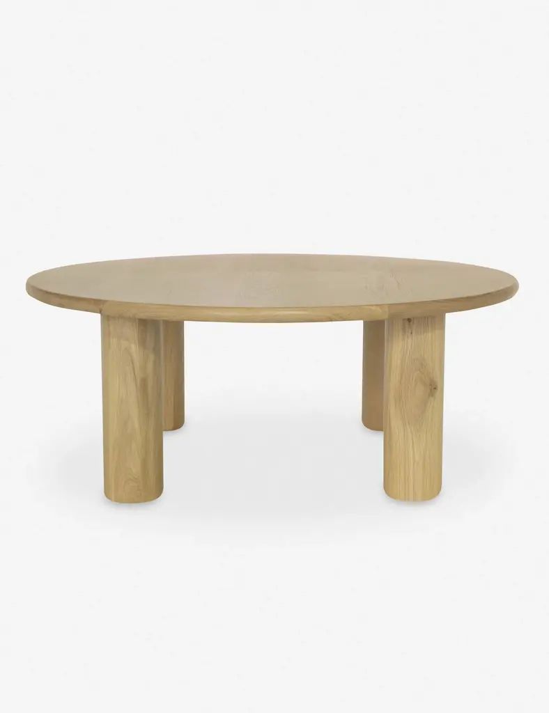 Bring soft impact to a conversational lounge with a round coffee table built for elevated everyday elegance. Its modern look is enhanced with a sleek top and thick column legs in oak, fashioning a versatile coffee table to anchor your design.