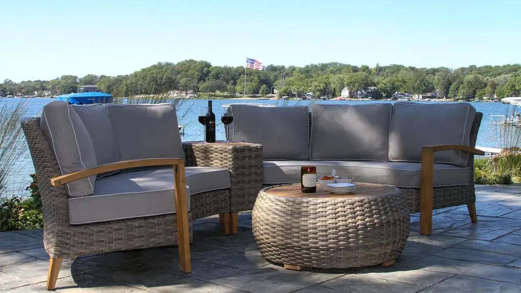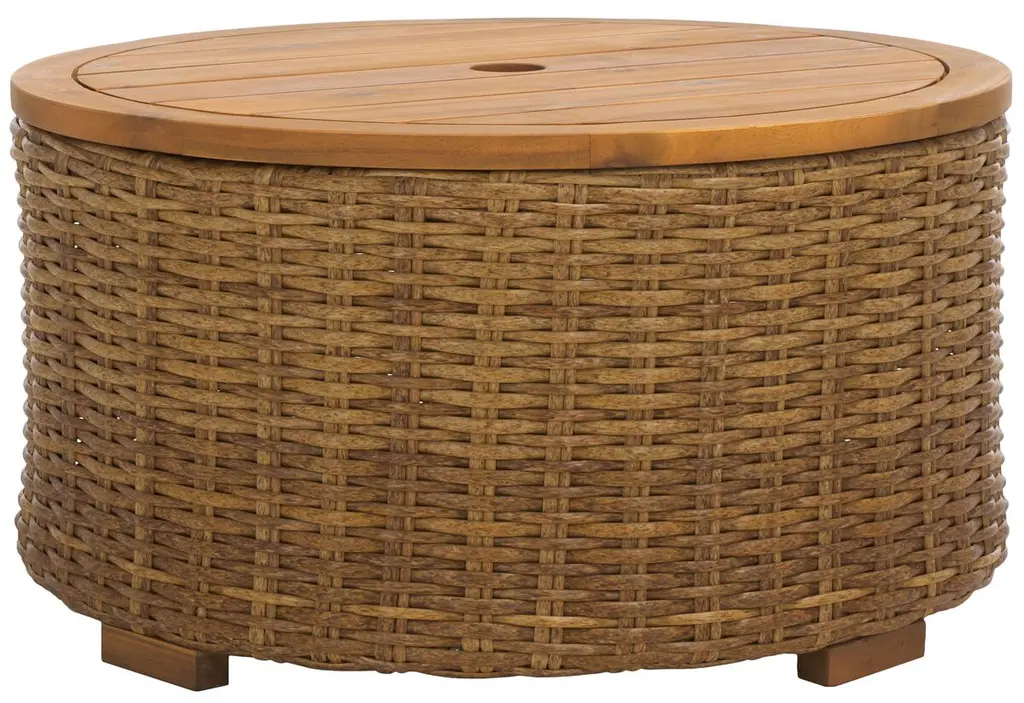 The Devyn Wicker Coffee Table completes your outdoor living room with a breezy, coastal aesthetic. Its frame is crafted from aluminum in a circular, curving shape. The design features a kiln-dried solid teak wood top in a warm, natural brown, and its body is wrapped in HDPE gray wicker rattan for a natural look. We love that this coffee table has such a beachy and vintage vibe, but it's also resistant to water, UV rays, and rust.