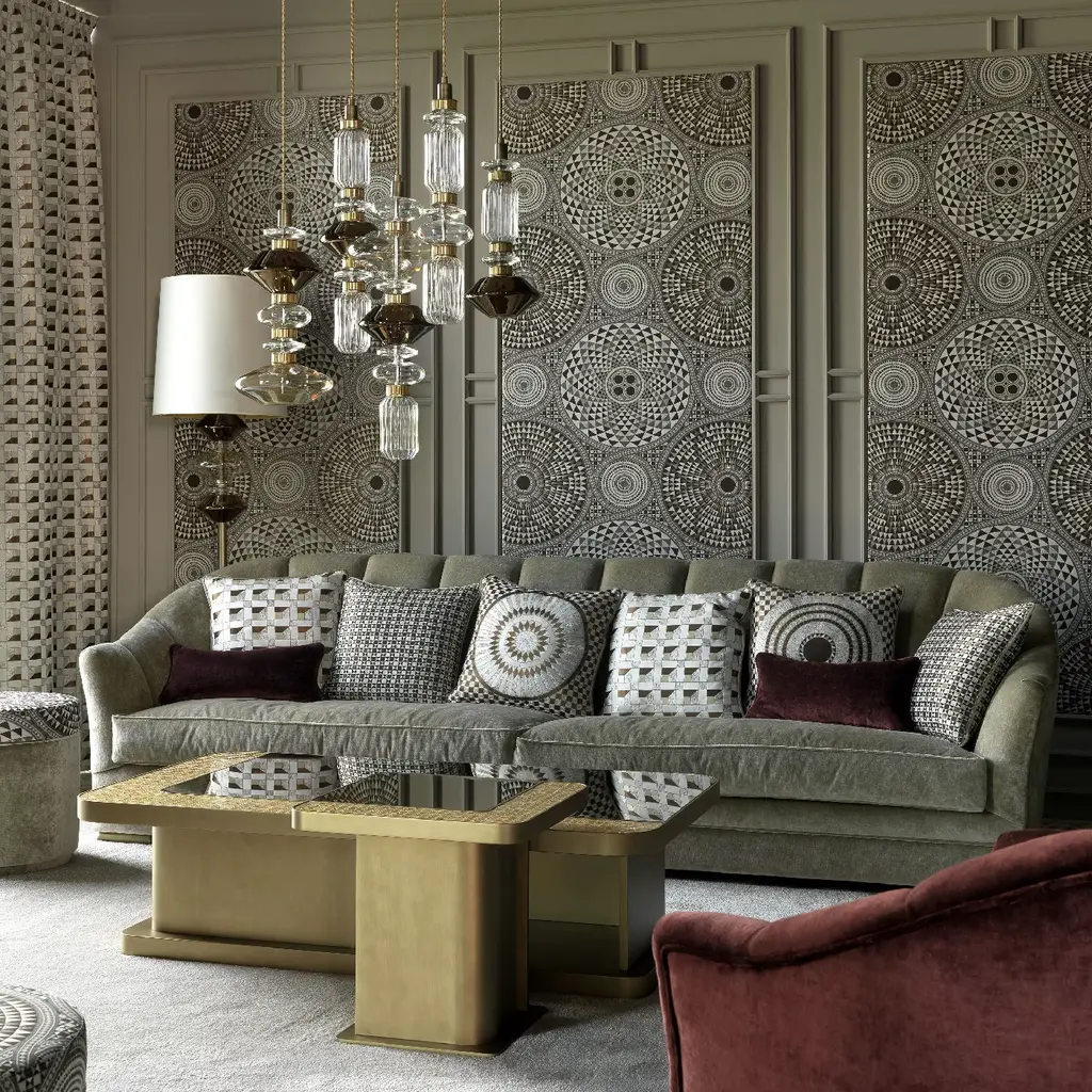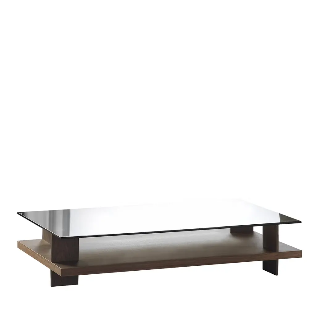 A striking interplay of voids and full volumes, this table is a striking example of an ancient material used to create a modern design. This imposing coffee table will be the focal point of a contemporary interior, where it will add a warm glow with its structure in bronze (also available with a silver finish) that forms geometric silhouettes with charmingly rounded corners. The top is highlighted with a mirror insert, enclosed in a half frame of splendid mosaic in tonal hues.