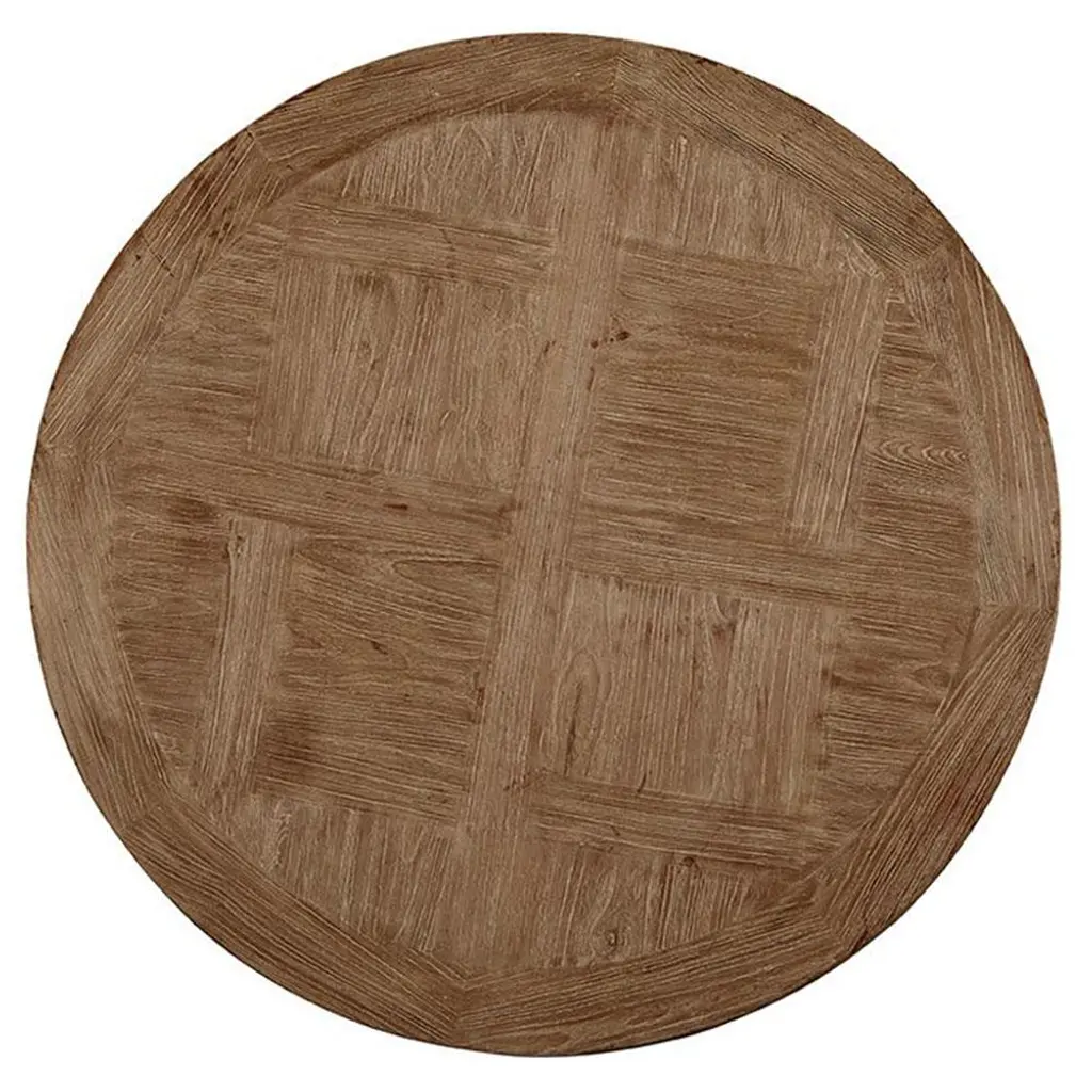 Dinelle Rustic Brown Elm Wood Top Brown Iron Leg Round Coffee Table