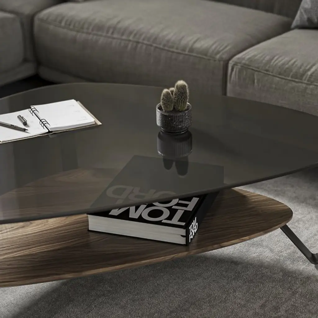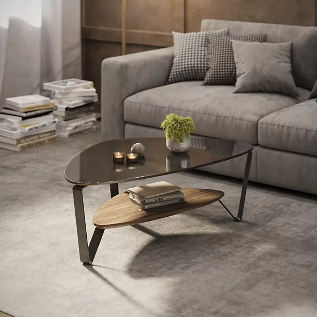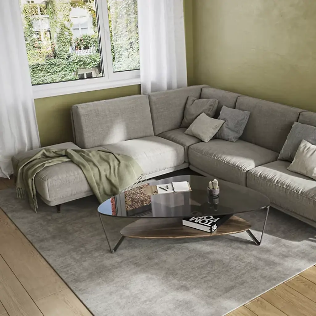 The elegant Dino Coffee Table by BDI is crafted with a distinctive mid-century inspired shape that has been updated for the contemporary living room. It is designed with a distinctive shape that is the perfect complement to sectional sofas, adding a touch of sophistication to your room. A unique look that offers a departure from the traditional rectangular table, this is a discerning choice that effortlessly blends form and function.