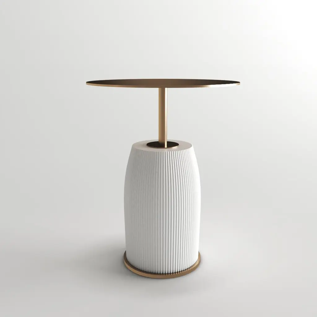 Sculptural coffee tables that combine, in different shapes, noble materials as marble, metal galvanic finish and handcrafted ceramic finely worked by hand in Vietri.Materials: Ceramic, brass.