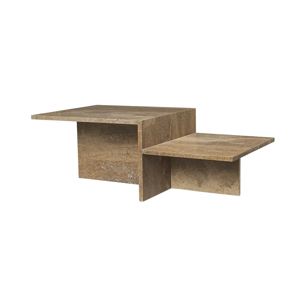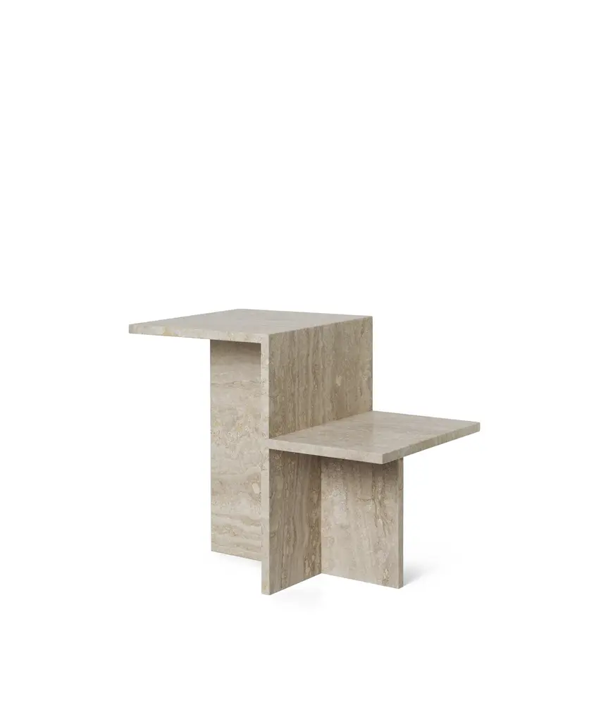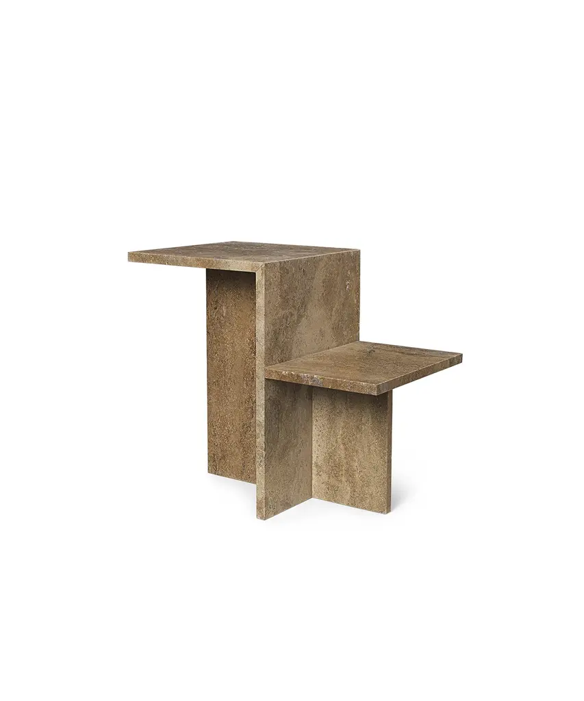 Danish design brand Ferm Living grew out of a graphic design agency and that attention to line and form linger in Distinct, a coffee table also inspired by Japanese minimalism. Exquisitely shaped from travertine, a sand-hued limestone, the spare construct creates a contrast to the richness of the stone's earthy texture. In front of a sofa or paired with a lounge chair, its geometric presence adds inimitable character to a room.