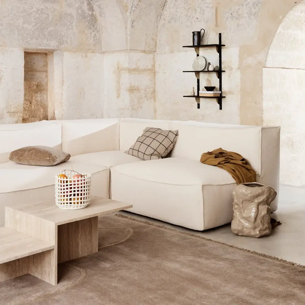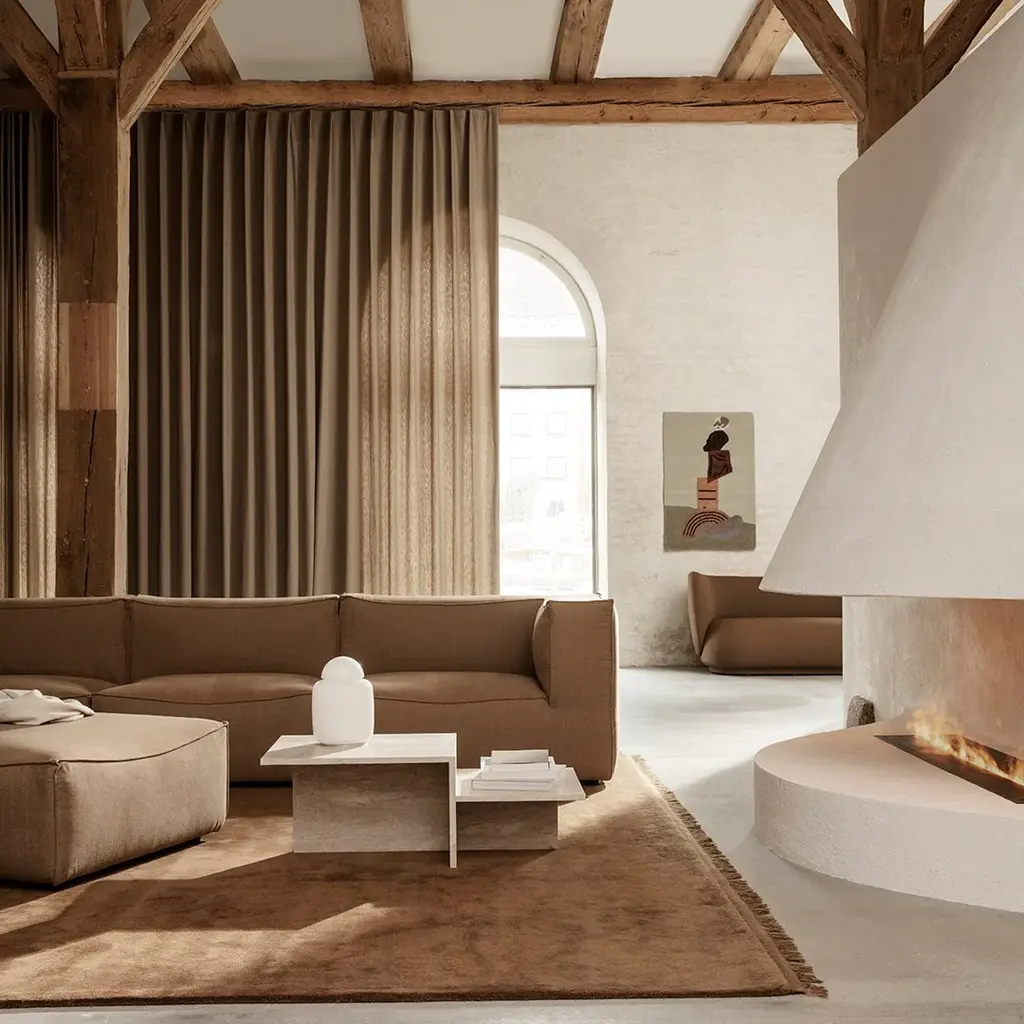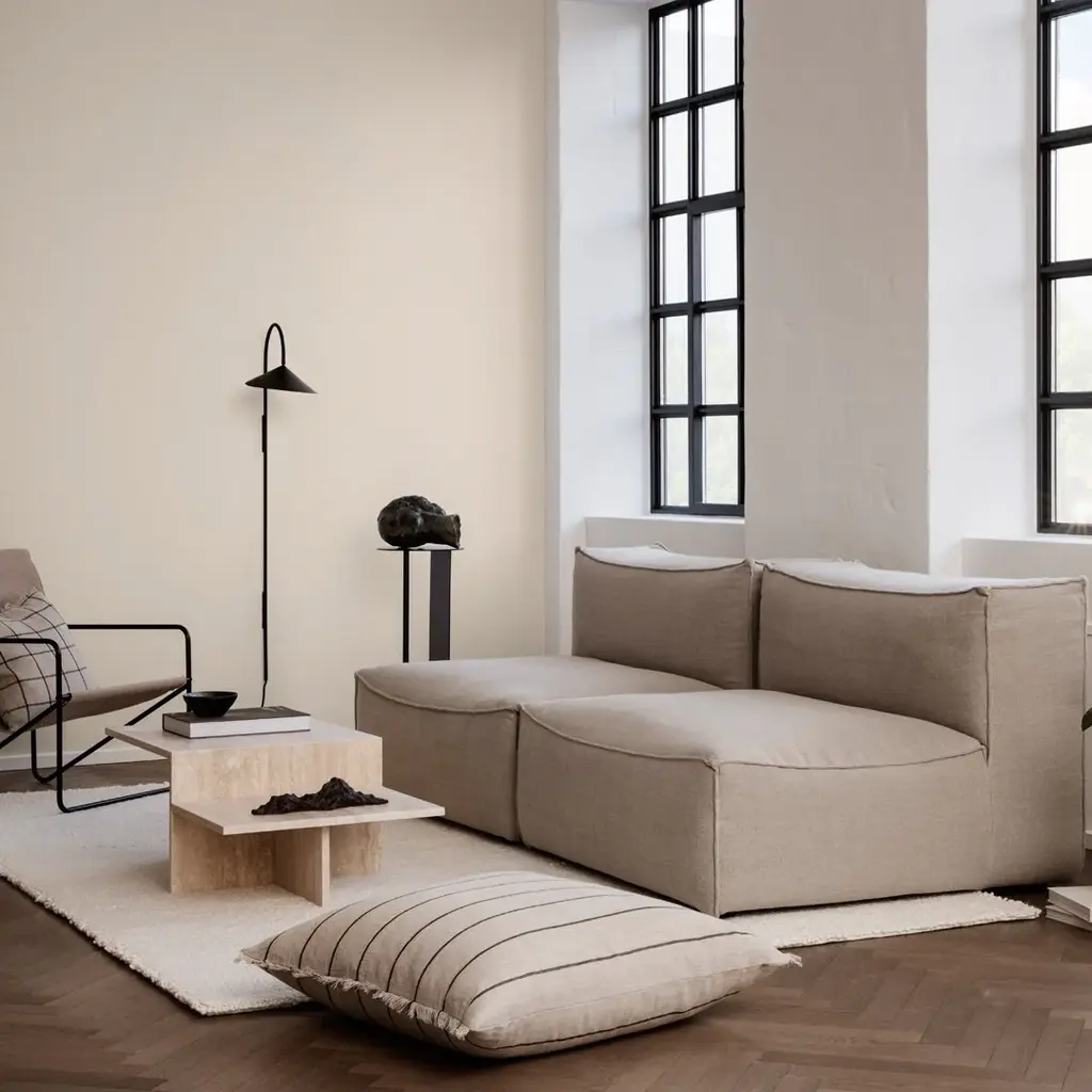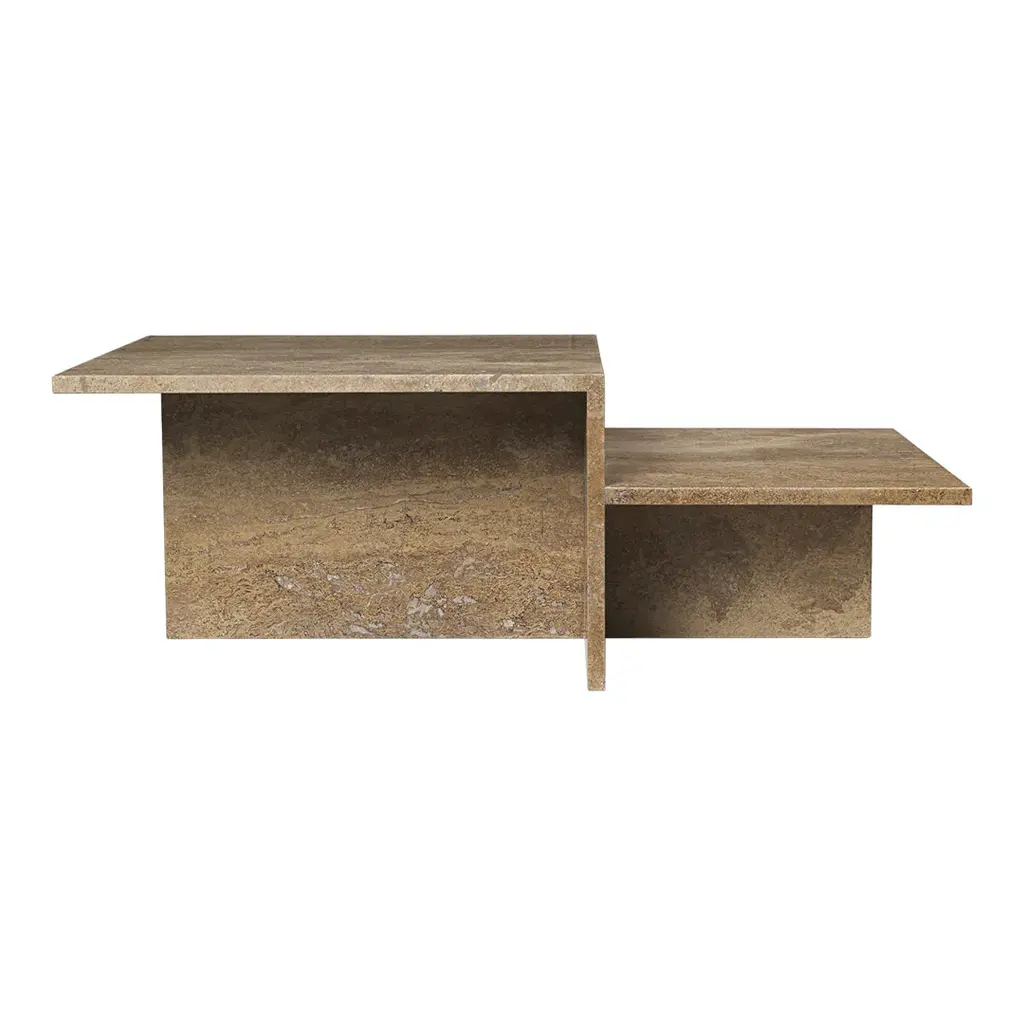 Originally inspired by Japanese minimalism, the Distinct Coffee Table explores the creation of complex structures based on a single element. The minimalist construction creates a contrast to the richness of the travertine's earthy textures. With the natural and diverse qualities of the sand-colored limestone, it provides rawness and tangibility that highlight the architectural character of the furniture piece.