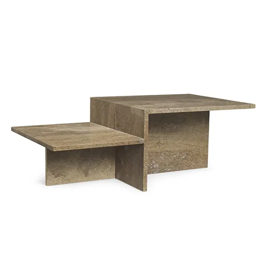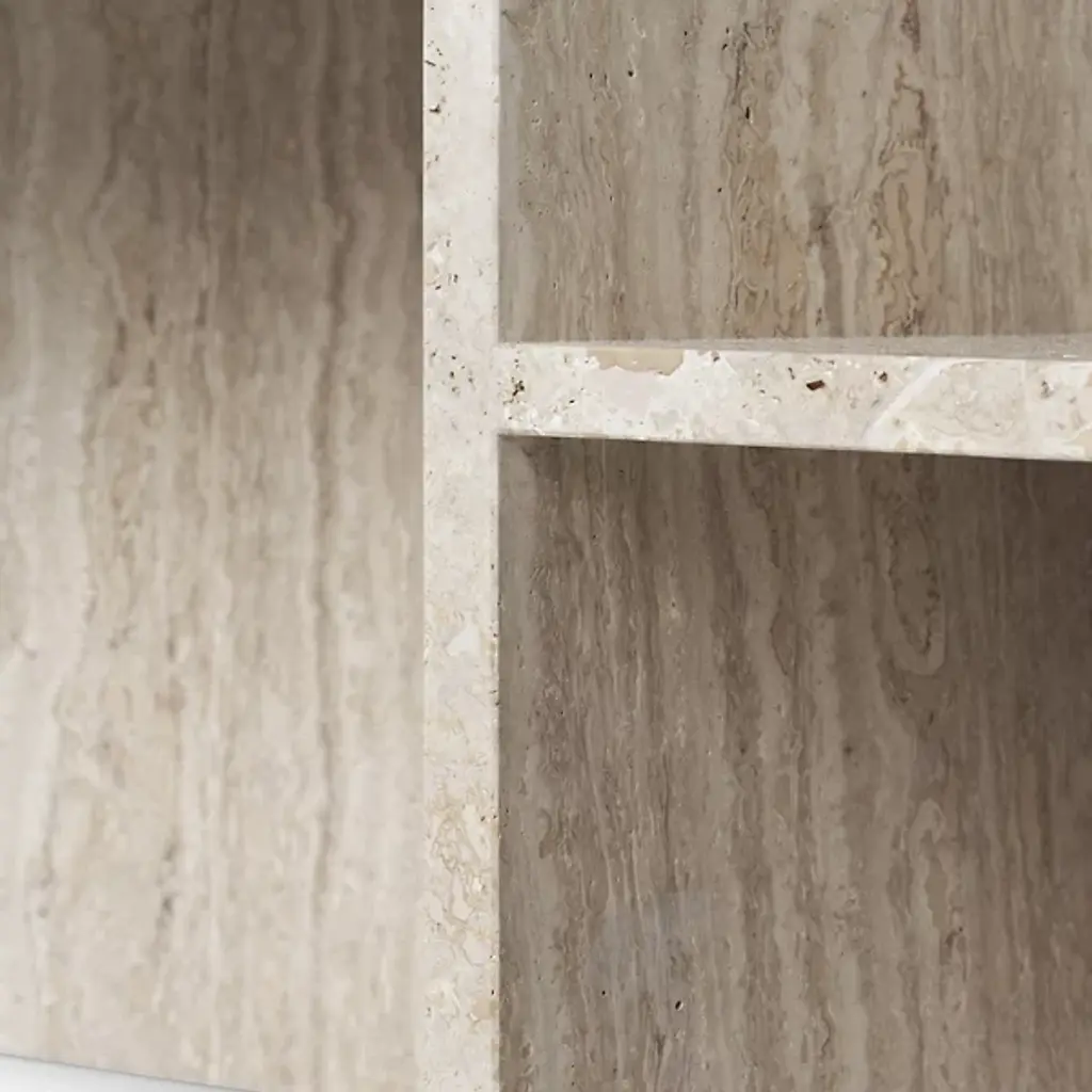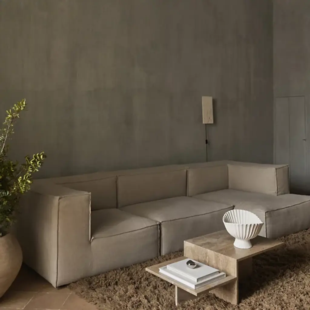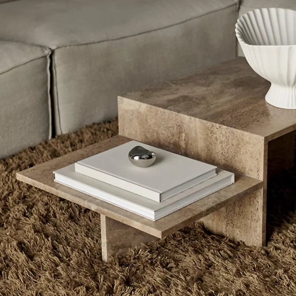 The Distinct Coffee Table from Ferm Living draws inspiration from Japanese minimalism and delves into the concept of complex structures derived from a single element. Its minimalist design offers a striking contrast to the rich textures of travertine. The sand-colored limestone, with its natural and diverse qualities, adds rawness and tactility, accentuating the architectural essence of the piece. Experience the fusion of simplicity and sophistication in this elegant furniture piece.