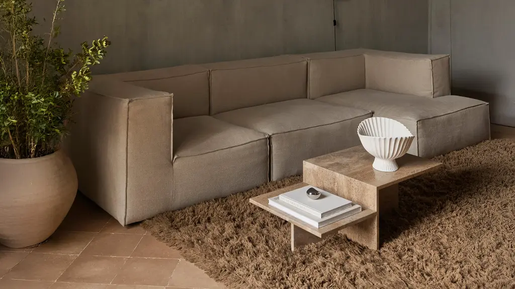 Originally inspired by Japanese minimalism, the Distinct Side Table explores the creation of complex structures based on a single element. This geometric composition is rich with texture, accentuating its striking form while offering multi-tiered tabletops. The Distinct Coffee Table is the perfect statement piece when paired with a seating area or displayed as a standalone sculptural object. Designed and produced by the Copenhagen-based studio Ferm Living.