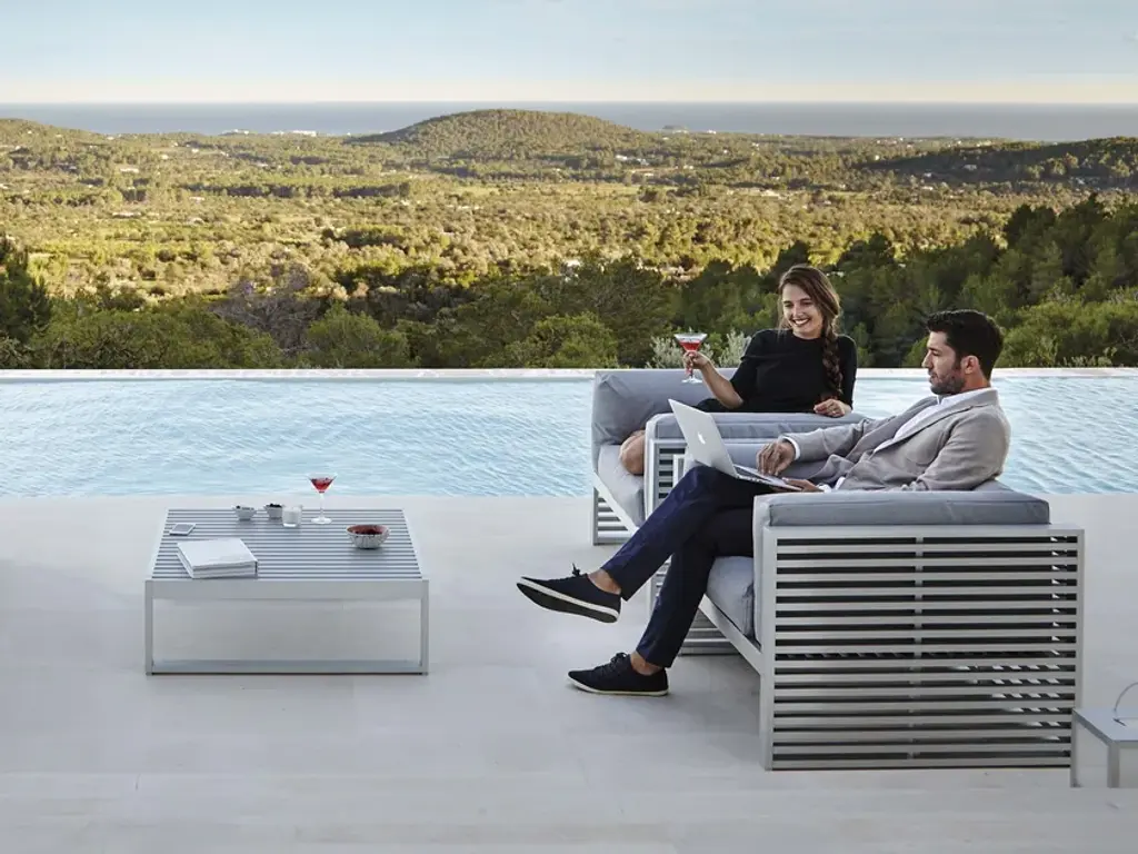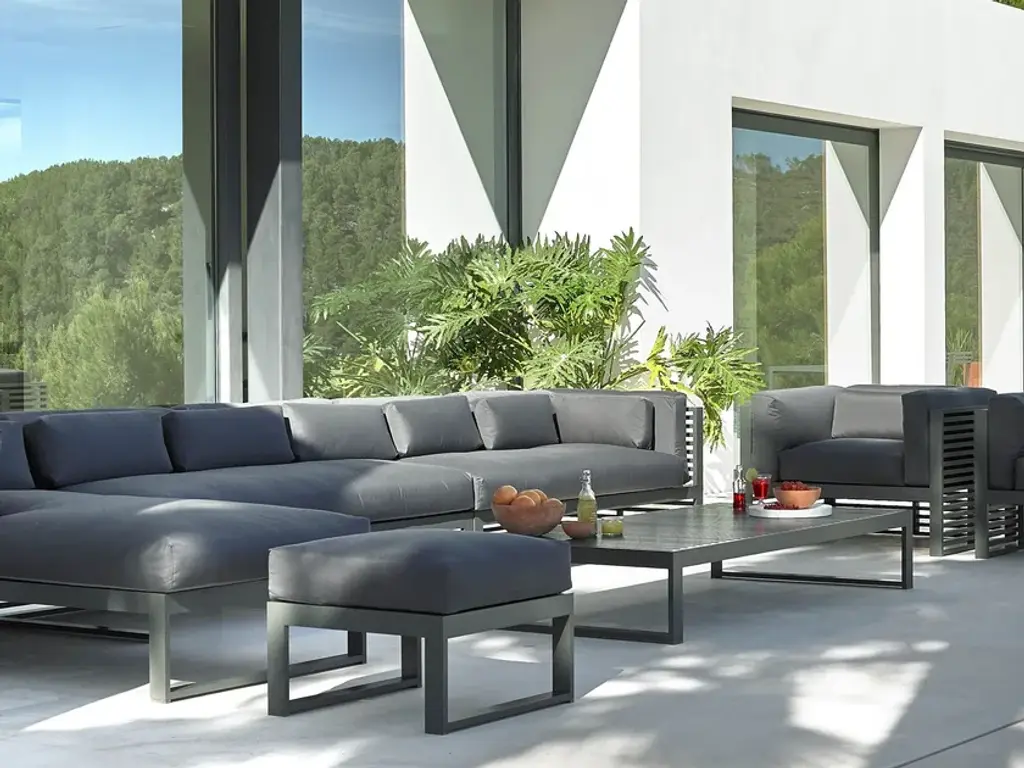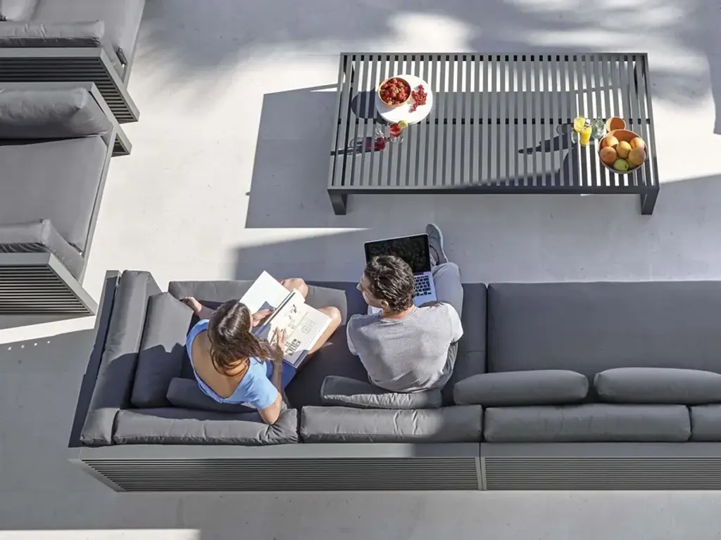 “I have always felt attracted by the patterns of light and shadows filtering through Mediterranean shutters, as well as by the work of certain architects from the Far East who work with wooden slats and bamboo cane. DNA is an outdoor furniture collection that reinterprets the essence of these horizontal shapes.”José A. Gandía-BlascoDNA is a collection of outdoor furniture inspired by the subtle play of the modulations of light and shadows filtering through Mediterranean shutters and it praises the shadows of Japanese aesthetics in traditional and contemporary architecture – the positive and the negative dispossessing any superfluous adornment.Made of anodized or thermo-lacquered aluminium profiles. Polyurethane foam rubber covered with water-repellent fabric. Removable fabric cover.Collections colour sample: anodized, white, agate grey, cement grey, sand, bronze, wine red, blue grey, grey blue, signal grey, anthracite and black.