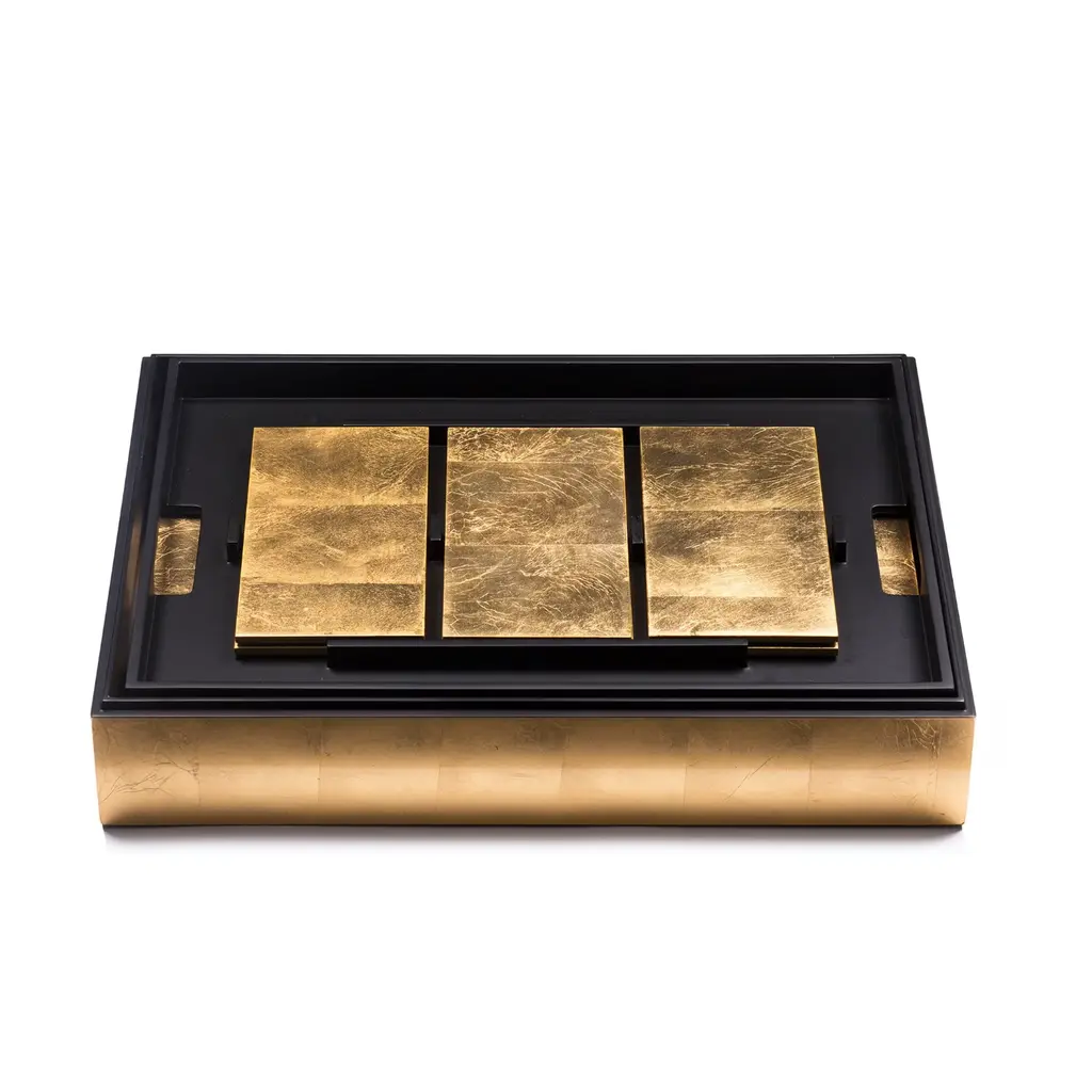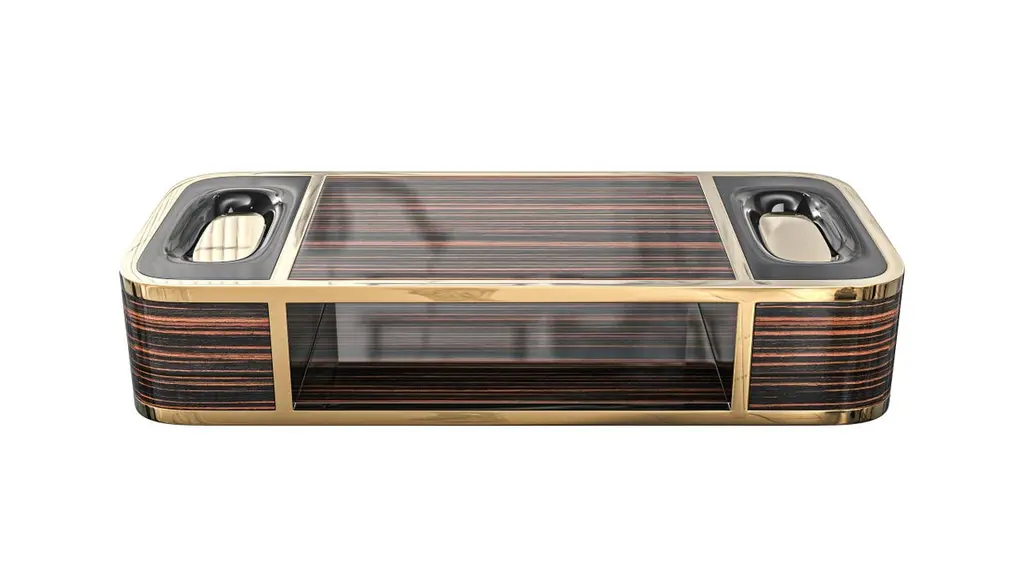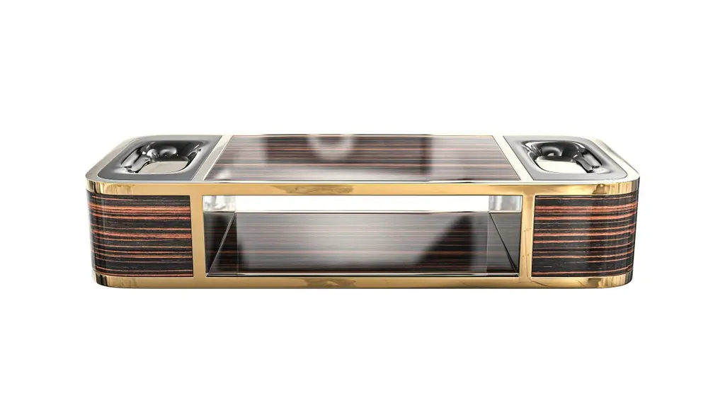 "Dolce Val" Coffee Table With Polished Ebony And Stainless Steel, Bronze Details