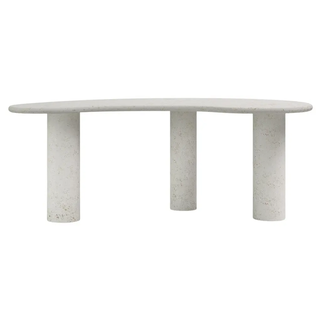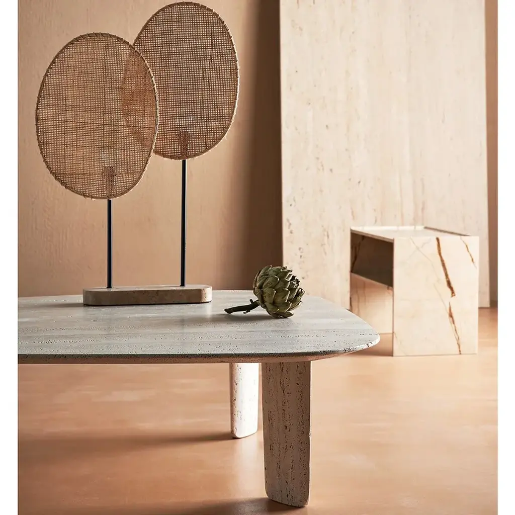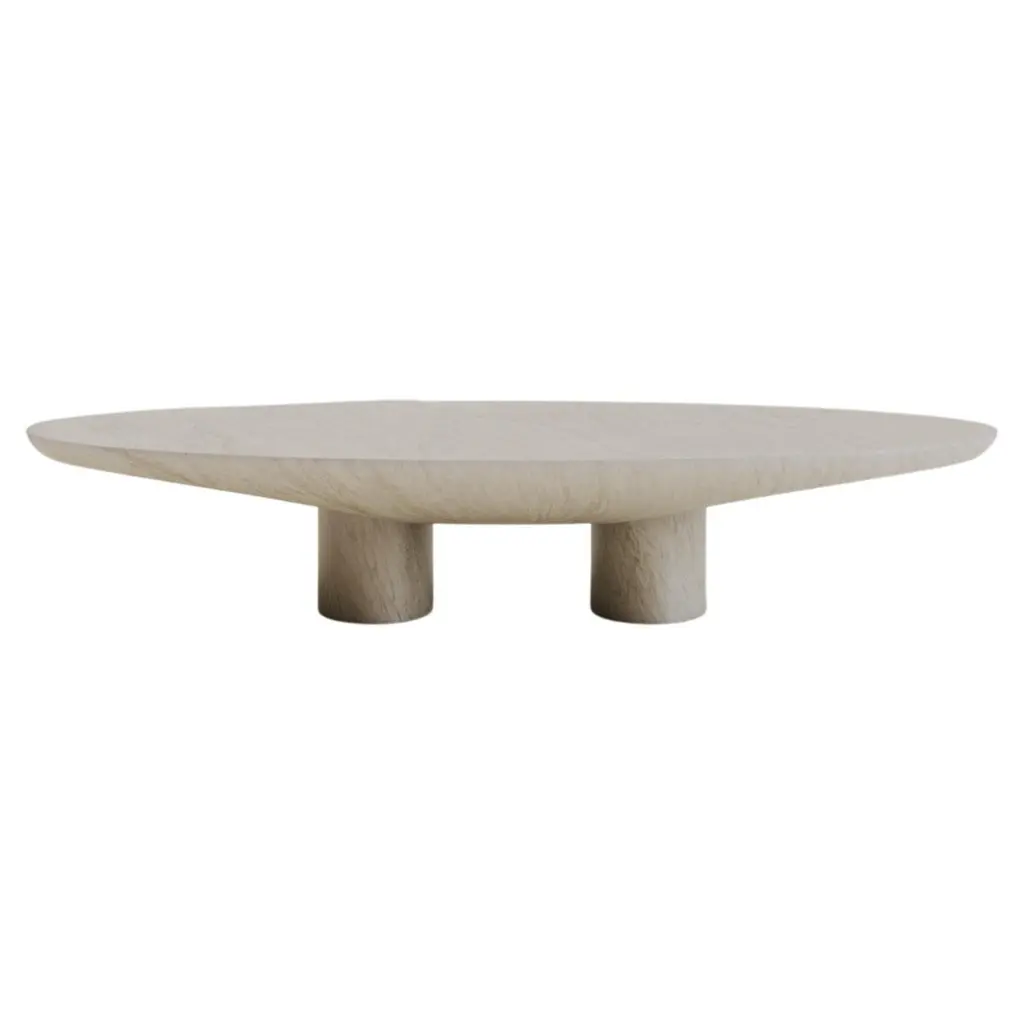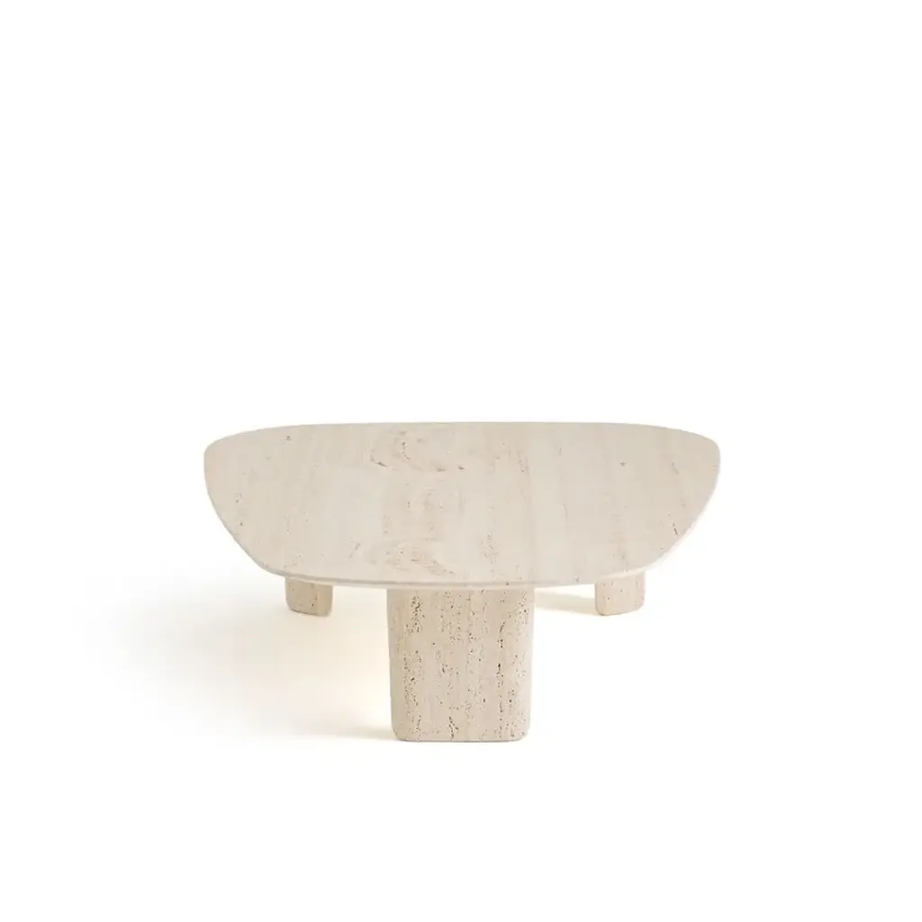 A strong and minimalist piece at the same time, the Dolmena coffee table is the element of conviviality in the living room. The line is generous and organic, the legs take on the shape of an aeroplane wing. A table with a unique design by AMPM.Top made of Travertino Romano from Italy. The pores are filled with transparent resin to protect the top from liquidsEdges and base in travertine with an open pore finishTop with bevelled edgesTravertine aeroplane wing base