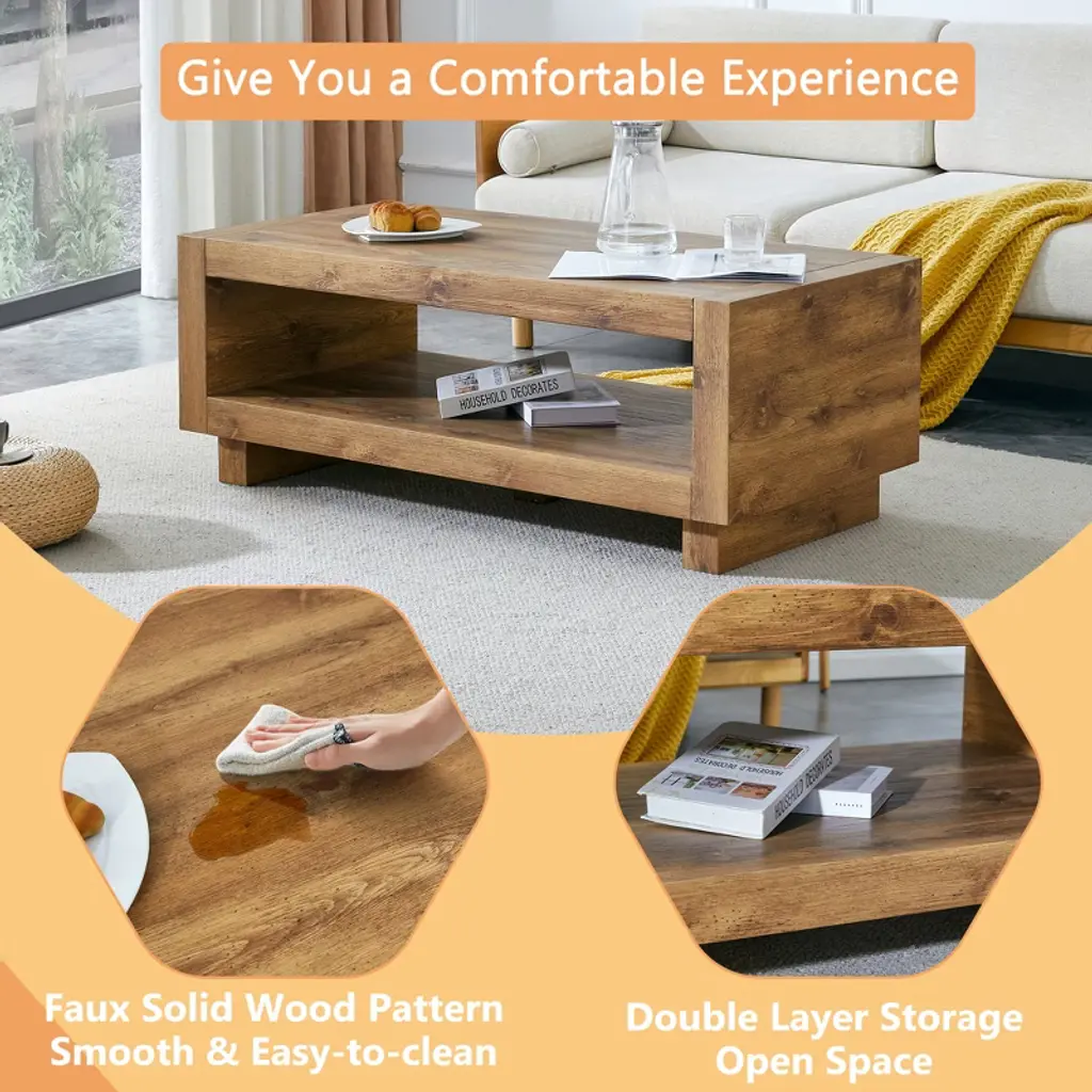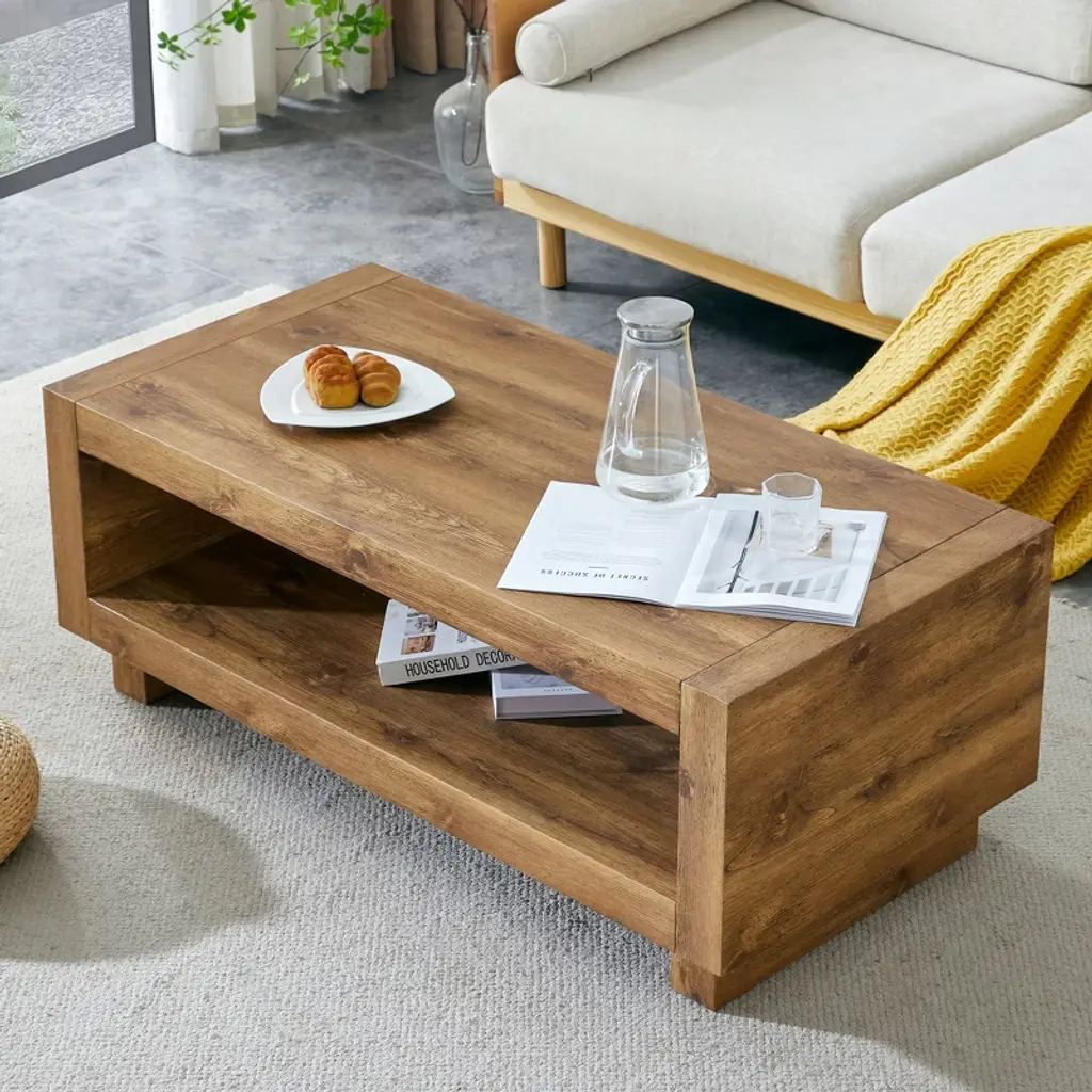 Dolonm Modern Minimalist Mdf Coffee Table With Storage, 47.2" L X 23.6" W X 18" H,mid-century Design For Living Room,natural Wood Finish,