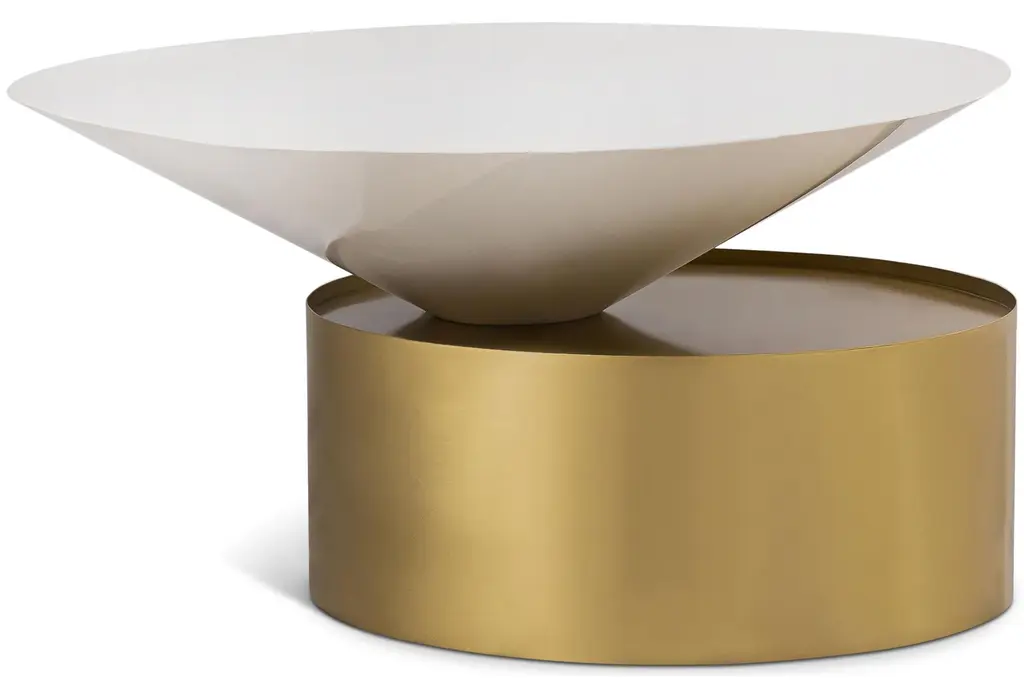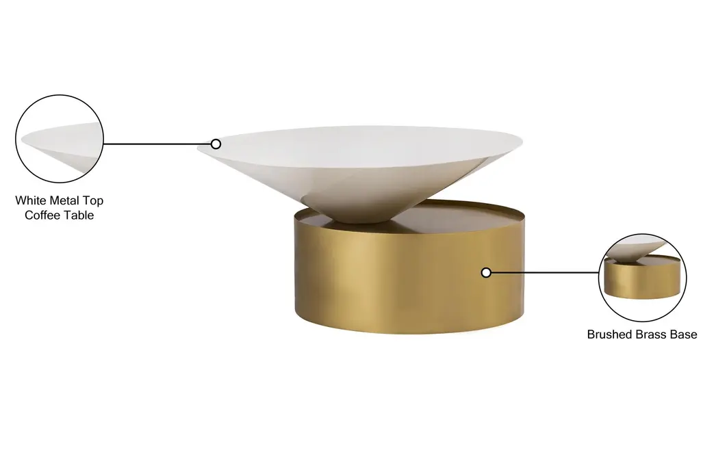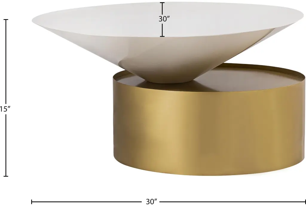 Dominique Modern White + Gold Metal 30" Abstract Coffee Table | Round