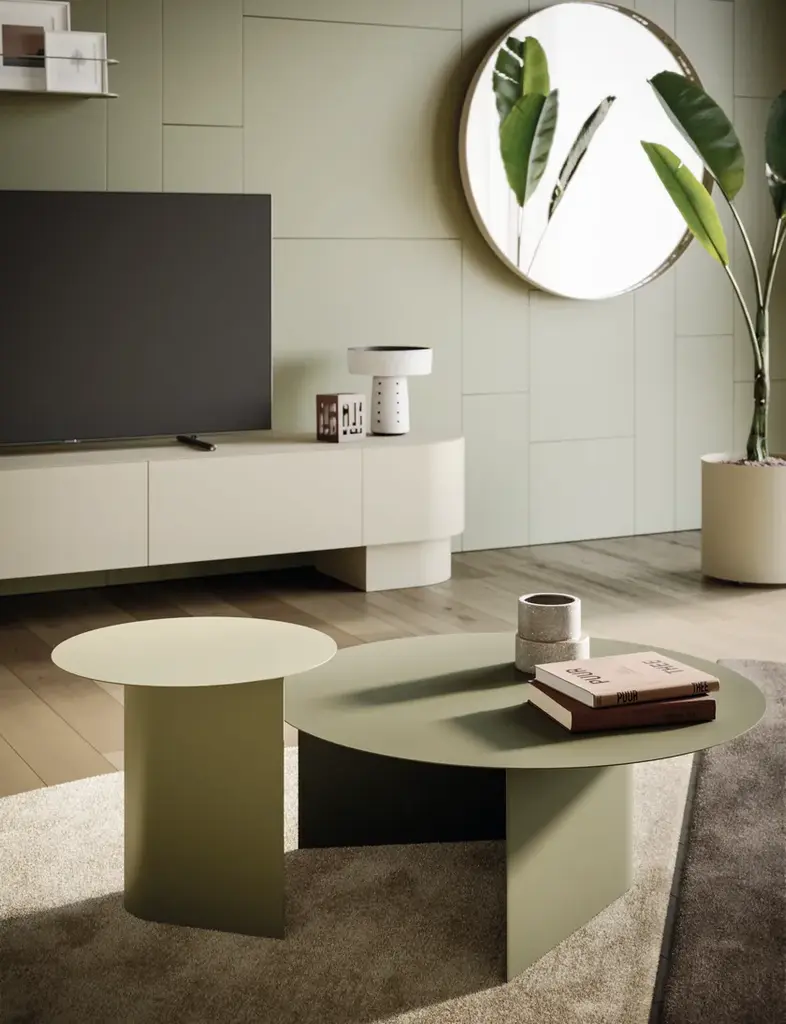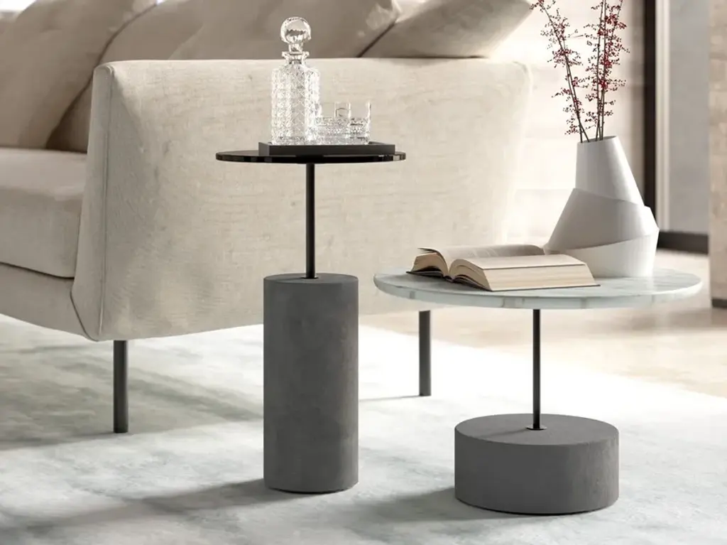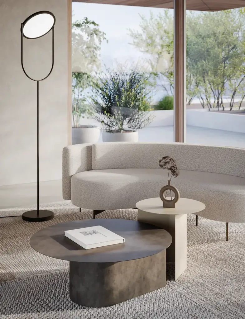 Domus is a round coffee table with a painted metal frame and top. Available in two sizes.
