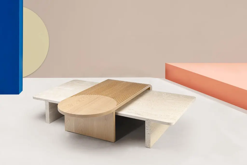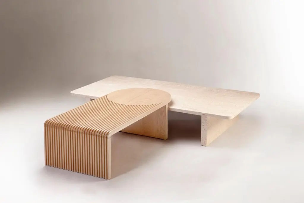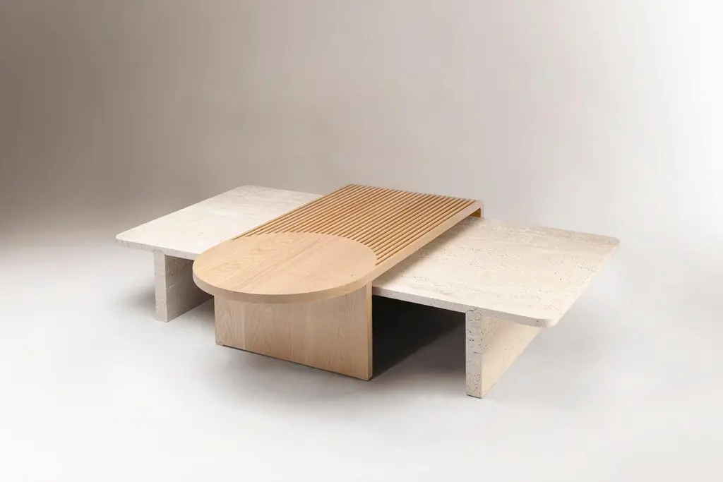 Dooq Coffee Table In Natural Travertine And Natural Oak Stick And Stone