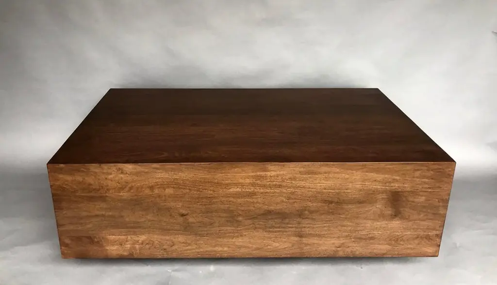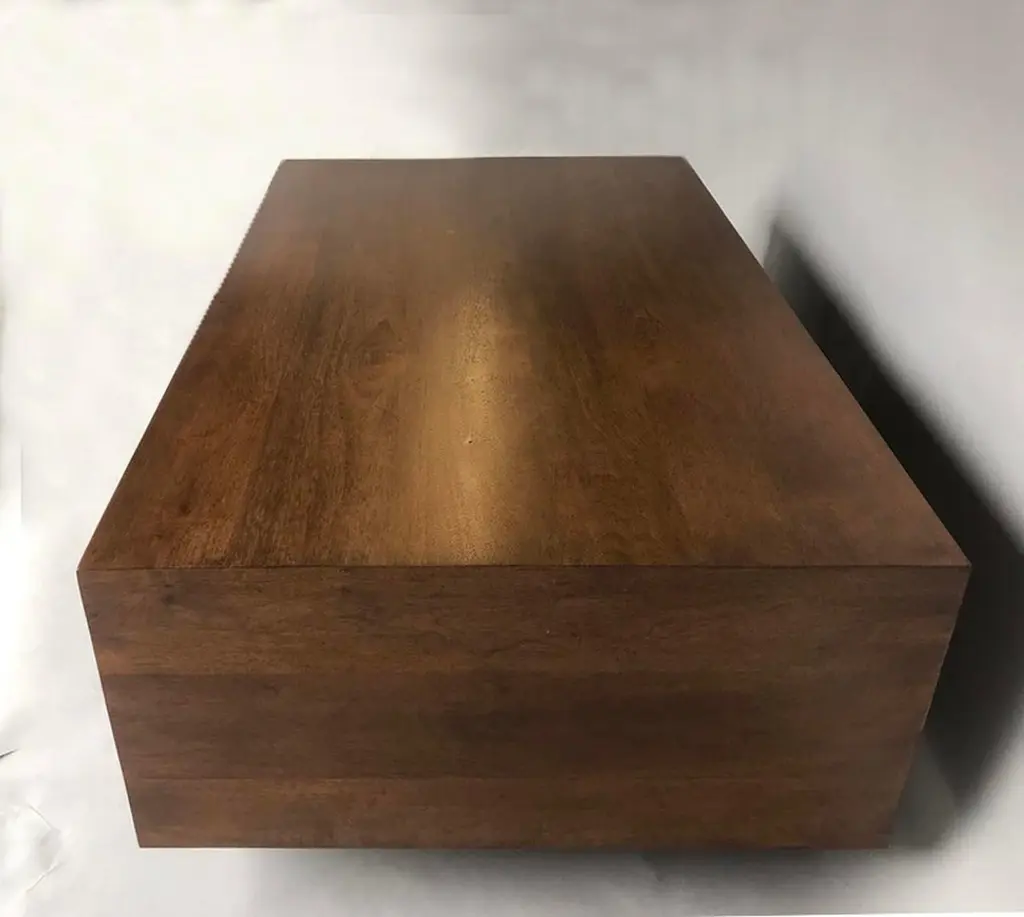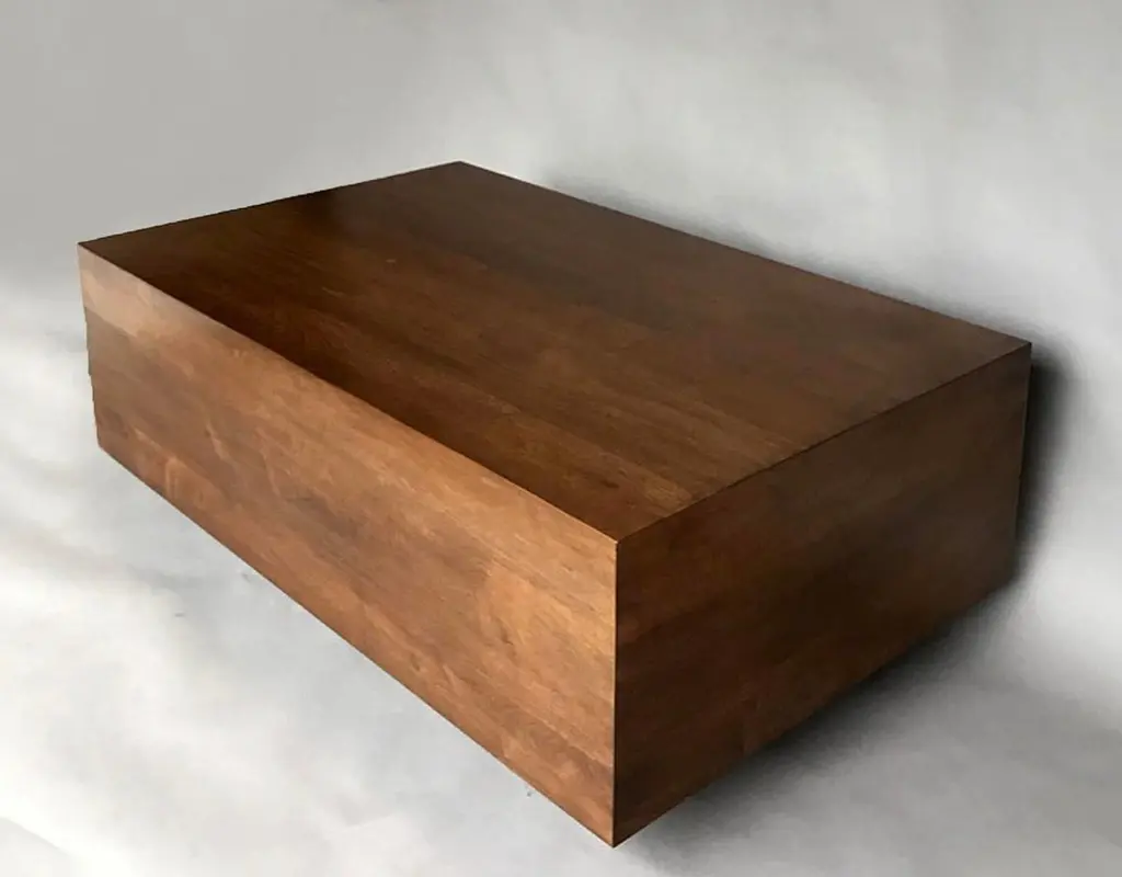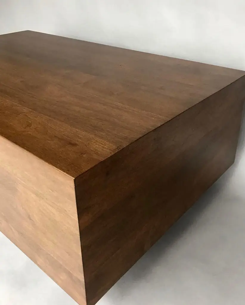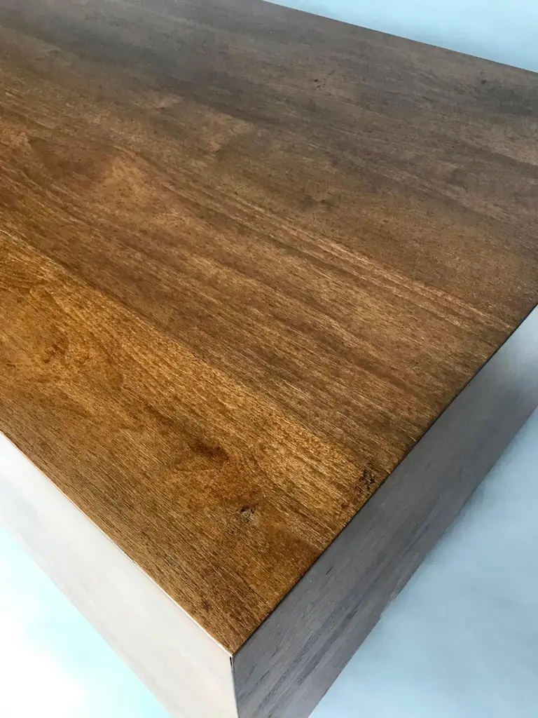 Custom walnut coffee table with a walnut #2 finish and light distress. Can be made in any size and in a range of finishes. Lead time is 12 weeks.Made in Los Angeles by Dos Gallos StudioAs shown 60 x 36 x 17 inches tall.CUSTOM PRICES ARE SUBJECT TO CHANGE. PLEASE INQUIRE BEFORE ORDERING. ALL CUSTOM ORDERS ARE NON RETURNABLE. FINAL SALE