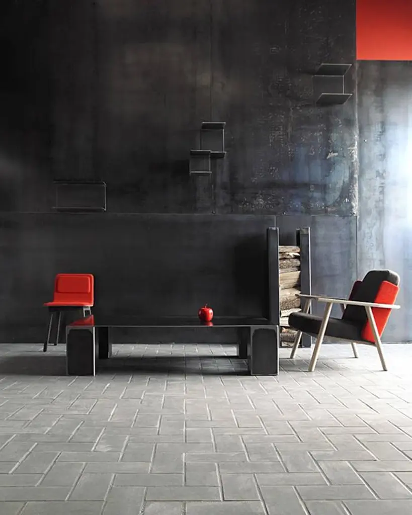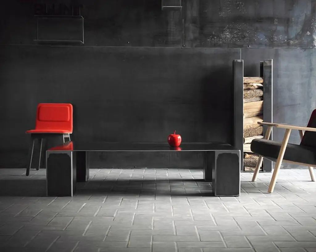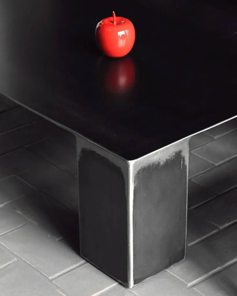 Coffee table double in handcrafted steel, dark finish. French manufacture,colorless varnished, custom-made available.