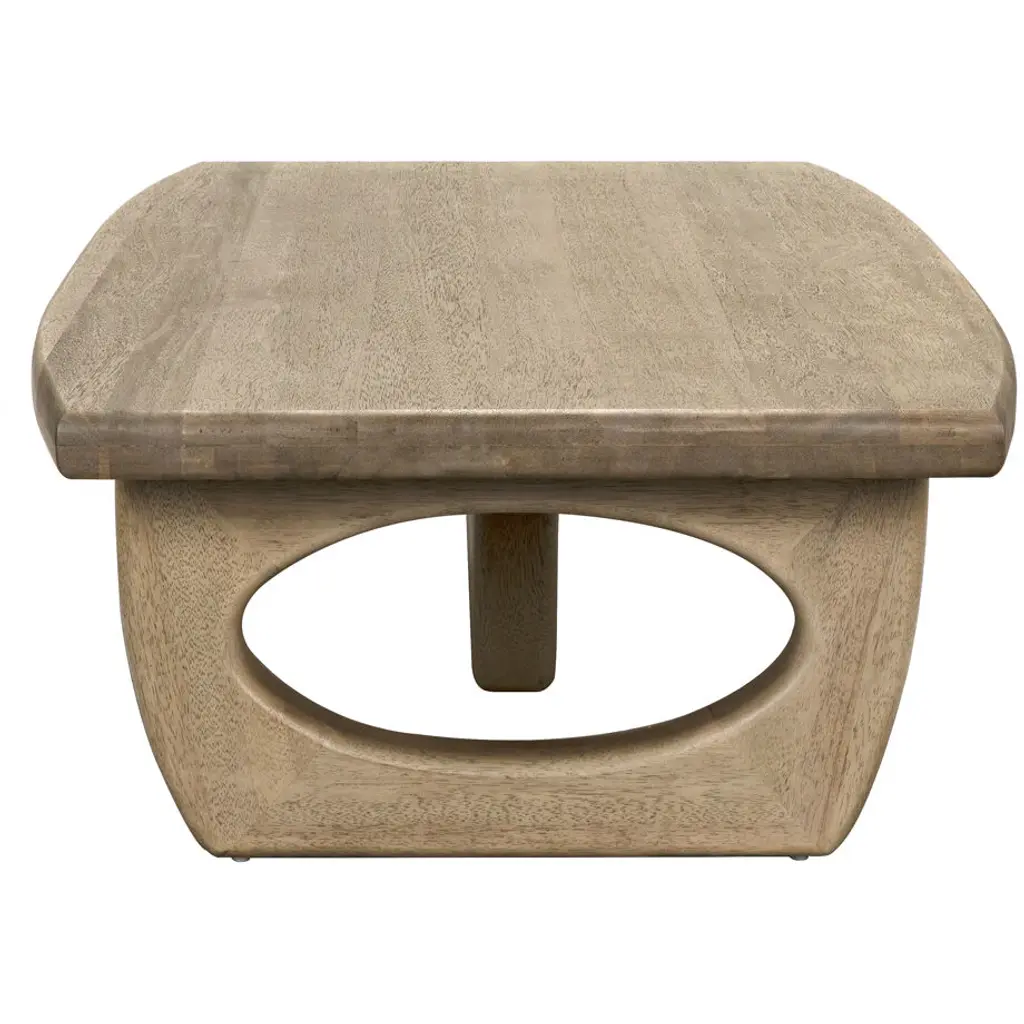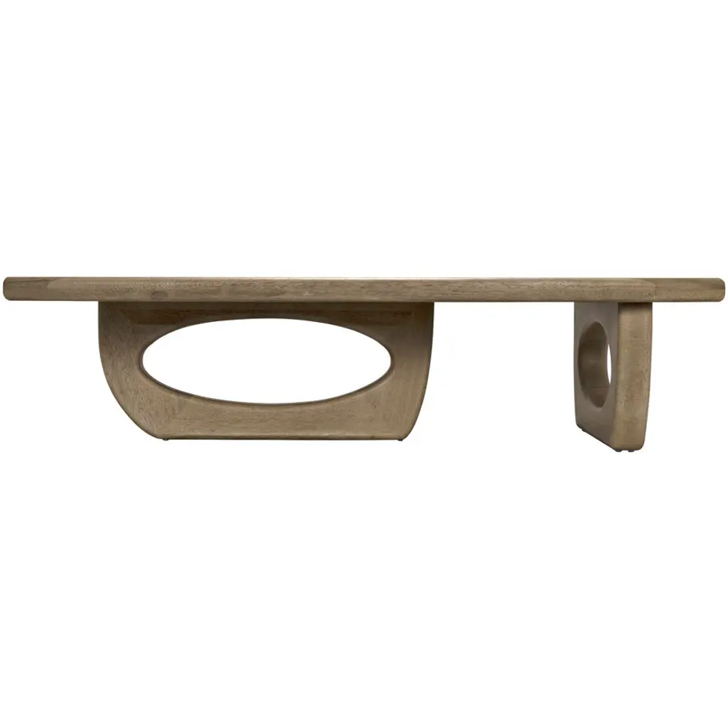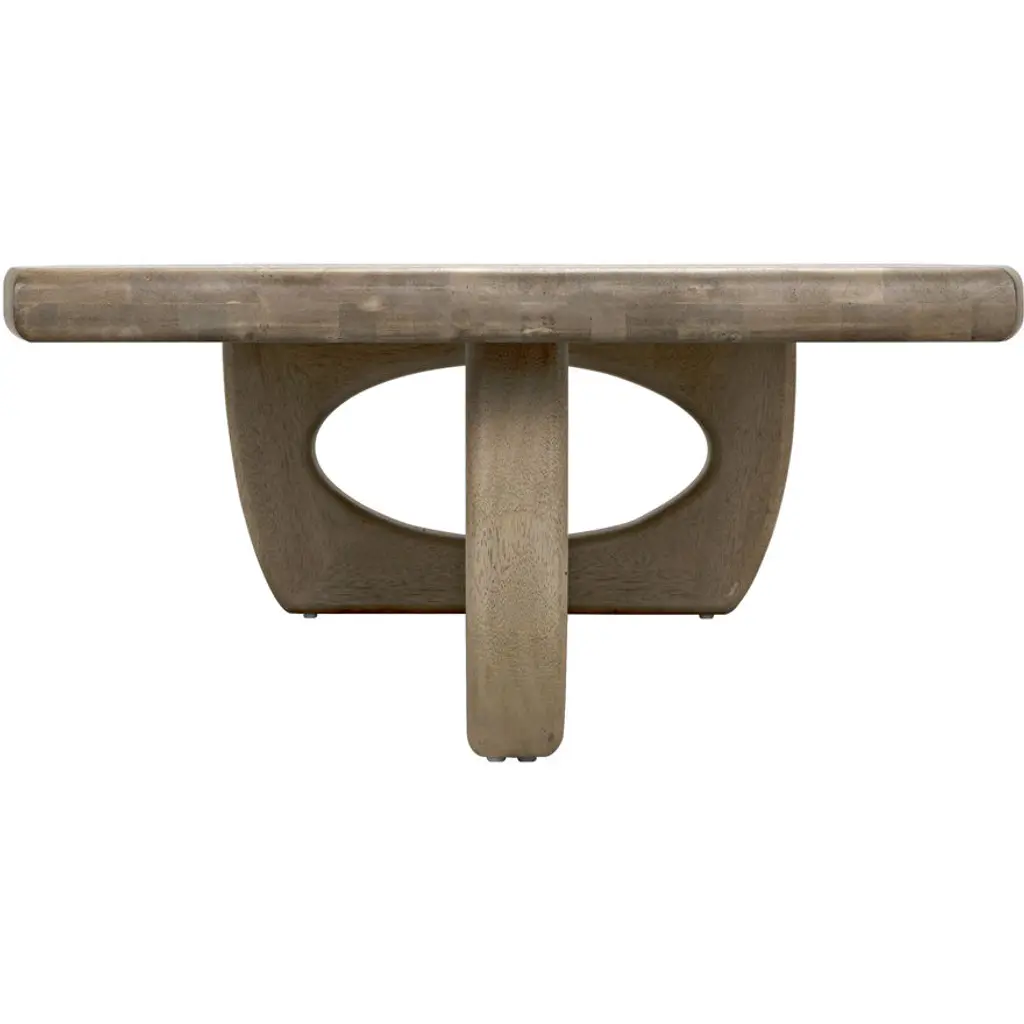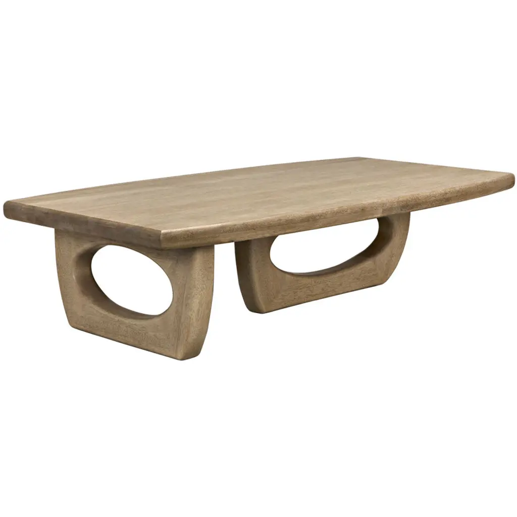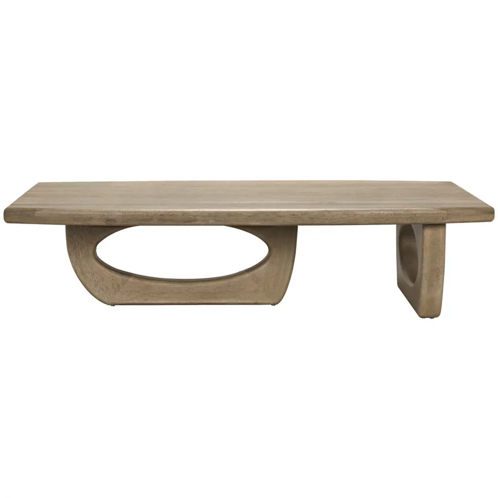 A rectangular coffee table is given an organic edge with a driftwood inspired base. Created by hand of walnut, a soft washed finish adds to the dreaminess of the design.