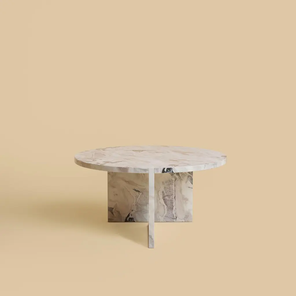 The Hashi coffee table is made entirely of precious dover white marble. The top is circular and 60 cm in diameter, the legs are made from two marble boards in which one part is inlaid on the top as a very elegant detail.Artisanal production made of technological innovation and an old-fashioned expertise where marble is finished manually to preserve and highlight its nature and preciousness of its unique history. Designed to be placed in premium livings for the classic tone-on-tone effect, or in lighter environments where the contrast with the context stands out. A contemporary and minimal style is the one that goes perfectly with these elements and accentuates its class, value and elegance.The piece is designed by Lebanto and is 100% Made in Italy in small familiar workshop. Attention to details and superior material is what distinguish Lebanto products.