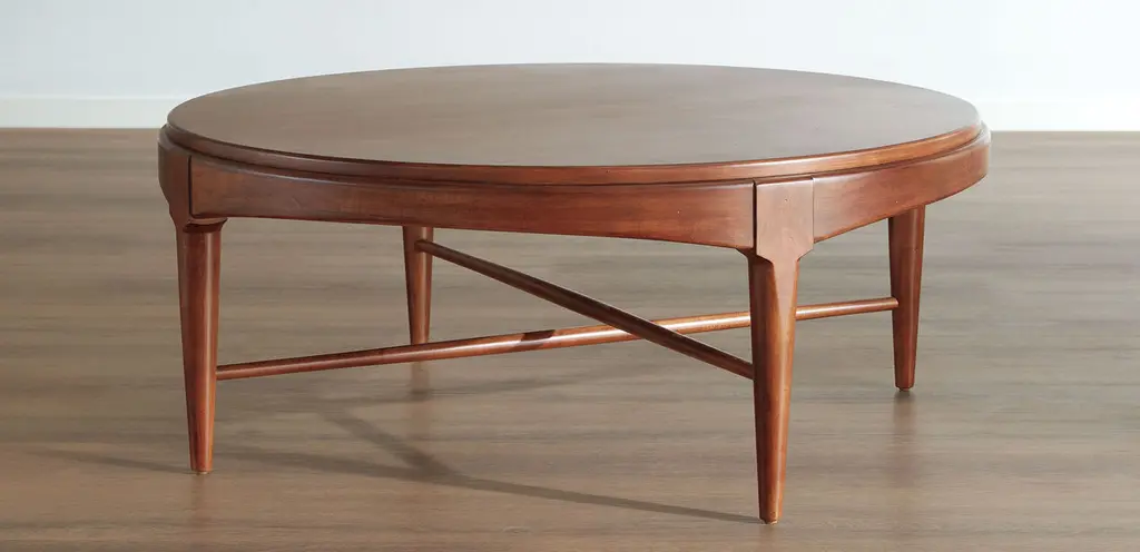 Our Draper round coffee table takes tidy midcentury elements like soft curves, floating stretchers, and tapered legs, and streamlines them to be a chameleon in other design aesthetics. Choose your favorite finish; our artisans craft each by hand out of maple.
