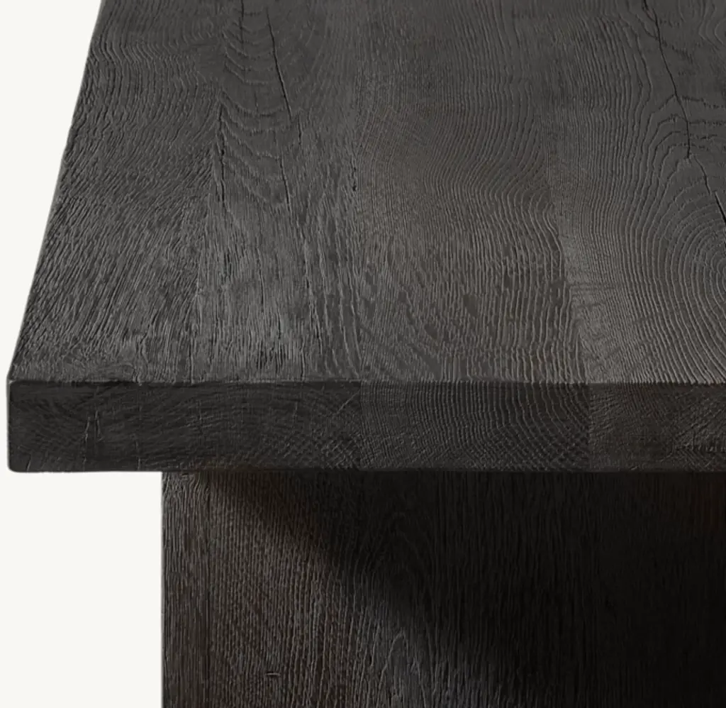 Reclaimed oak timbers from decades-old buildings in Europe lend richness to this simple, linear collection from designer and maker Nils Verhoeven. Each piece is handcrafted with a richly textured, wire-brushed finish that celebrates the wood's rustic character, bearing the occasional knot, nick or crack. No two pieces are exactly the same. SHOP THE ENTIRE COLLECTION