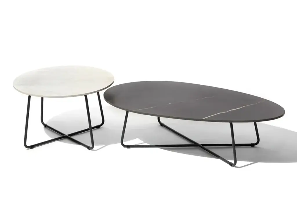 Drop is a low fm-ceramtop and aluminium coffee table.The Drop coffee tables perfectly complement all lounge furniture. These side tables stand are particularly suitable for Kairos Lounge, as well as the Cosmo Lounge. Universally applicable and with fascinating decorations of high-quality 12 mm ceramic tabletops, as well fm-laminate graphito and sabbia. Different heights of each availabel size offer the possiblity to a stylish arrangement. Availaible with anthracite or white frame.