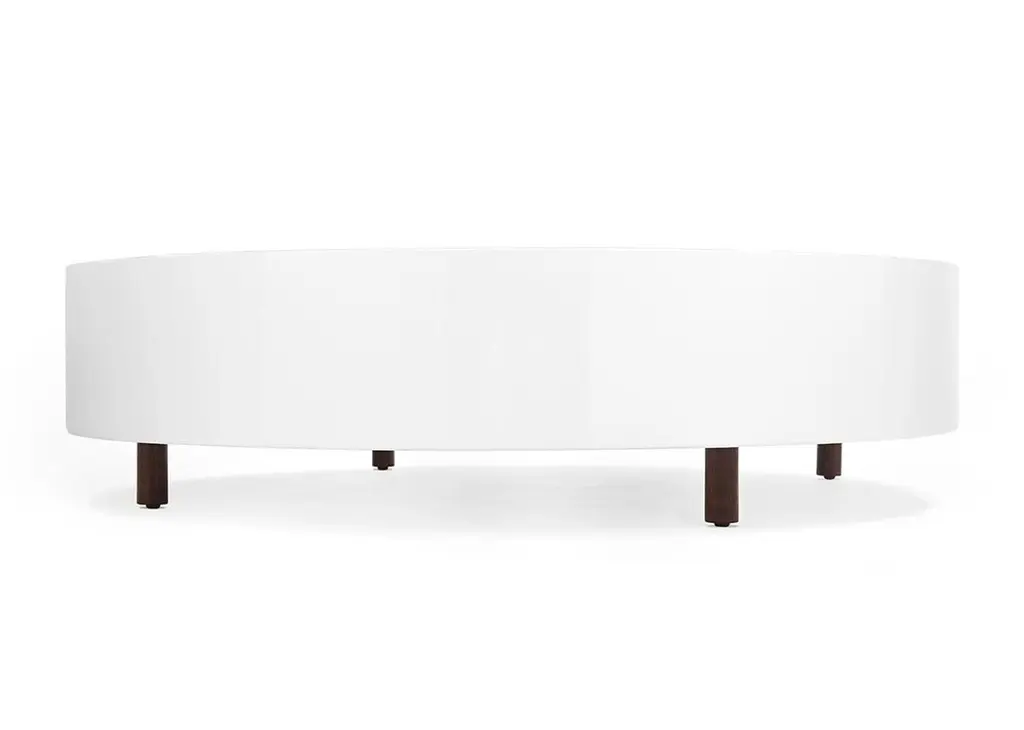 Drop Coffee Table Round Table, Wood Legs White Lacquered