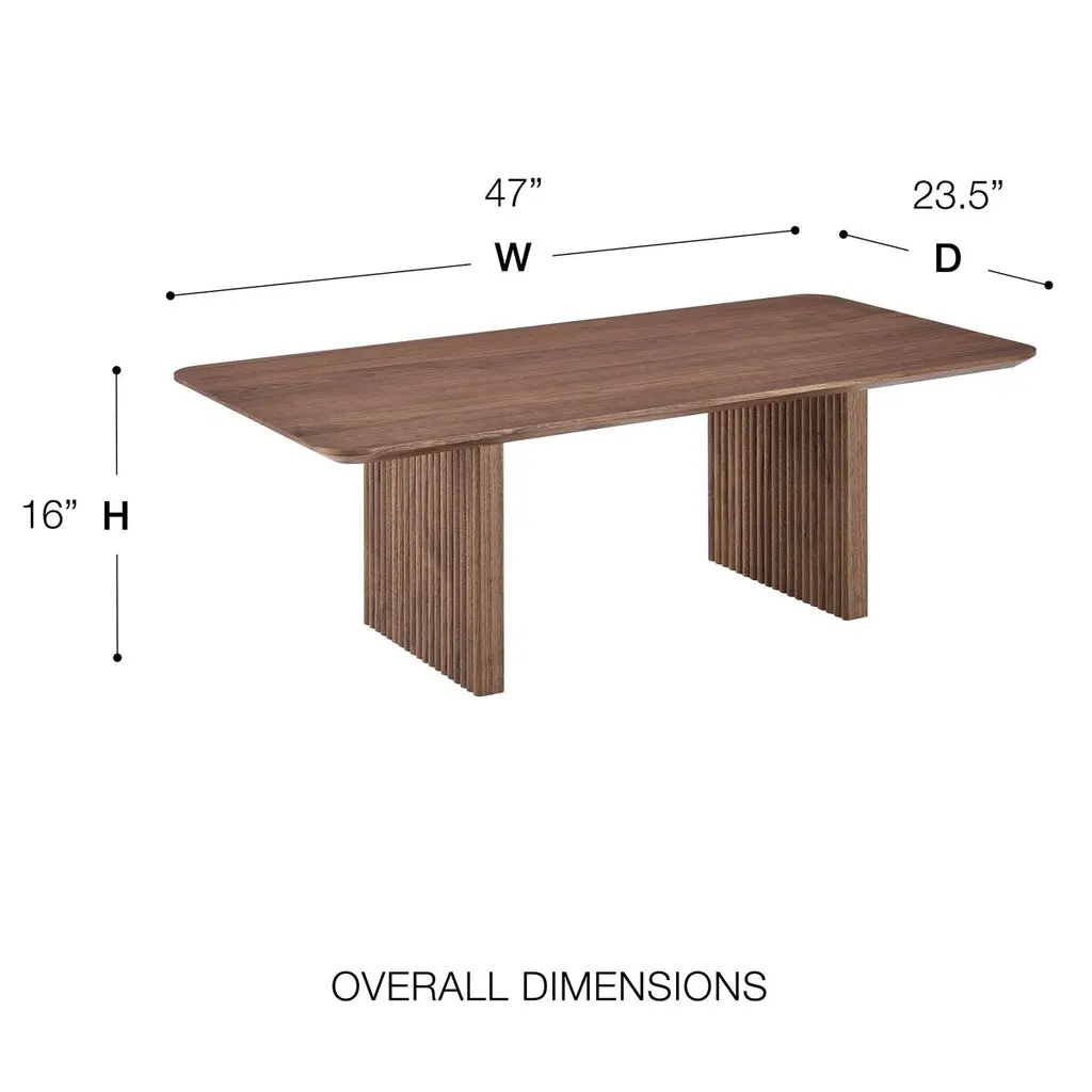 The Duke 47" Fluted Coffee Table exudes sophistication with a durable touch. Its sleek, minimalist design suits any living room or lounge, blending seamlessly with modern and traditional decors. Built to endure residential and commercial demands, it balances beauty and resilience with a spacious surface and robust construction. It is perfect for displaying coffee table books or sparking conversations.