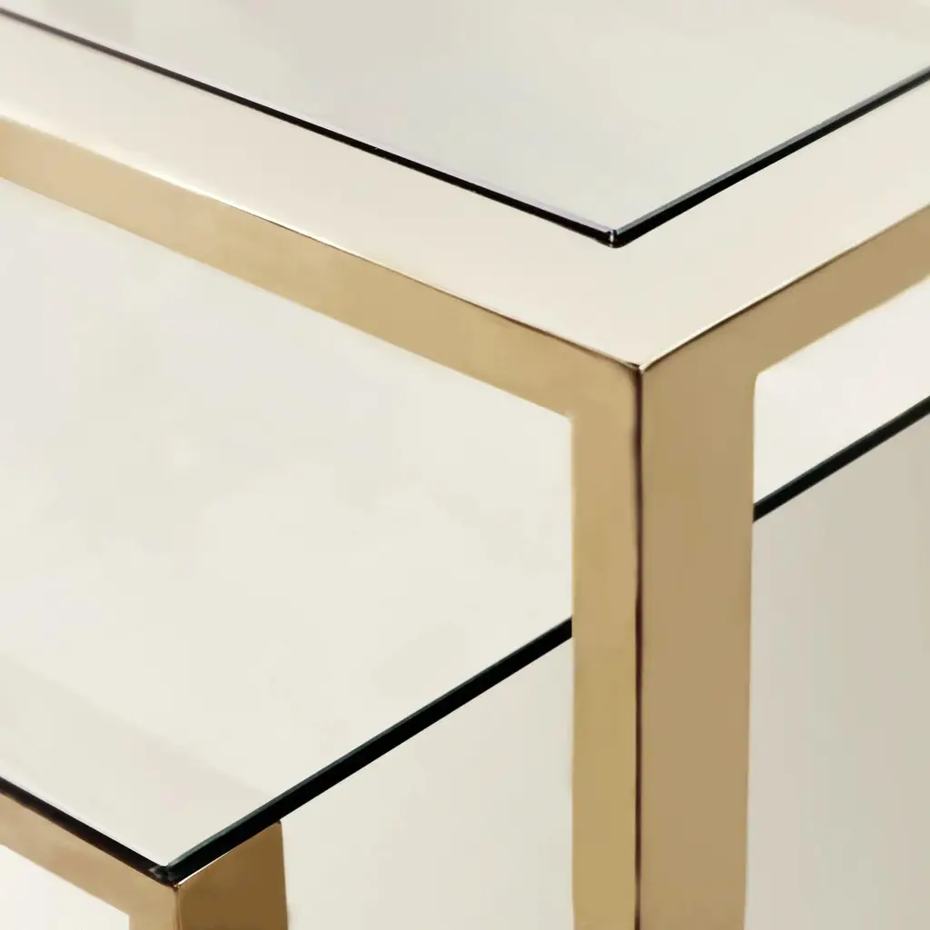 Duplicity collection is designed with form and function in mind. Constructed of stainless steel and glass, with a floating bottom shelf for clean and simple storage.Exclusive to Z Gallerie.