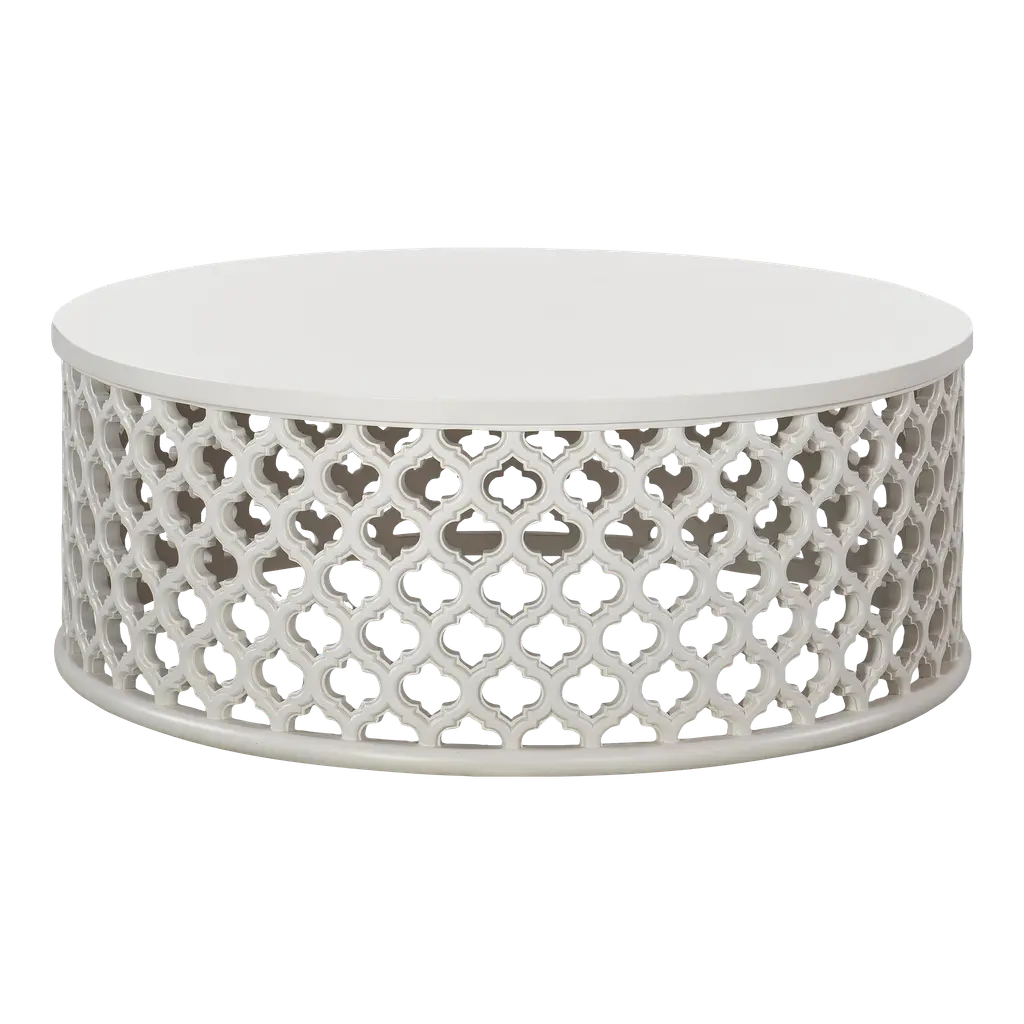 Classic, yet new! This durable round white cast concrete coffee table will provide a timeless option for your outdoors. Plenty of surface space is at your fingertips when entertaining. Add a couple of candle hurricanes for calming ambiance.
