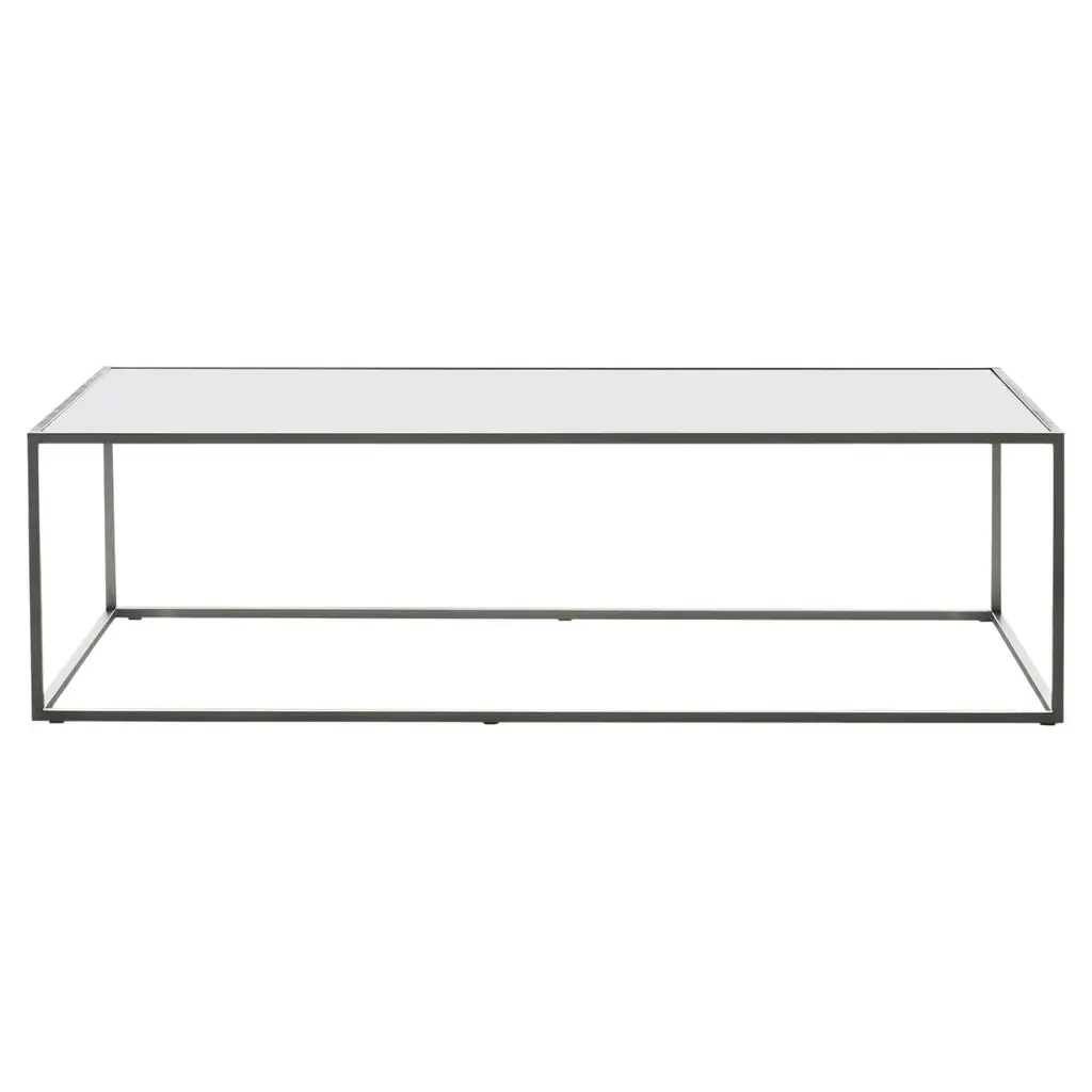 Streamlined and stylish, this minimalist coffee table can easily adapt to your home decor aesthetic. The gunmetal bronze-finished frame of this living room coffee table features tapered legs and an inlaid tempered glass top to keep your space feeling open and sleek.