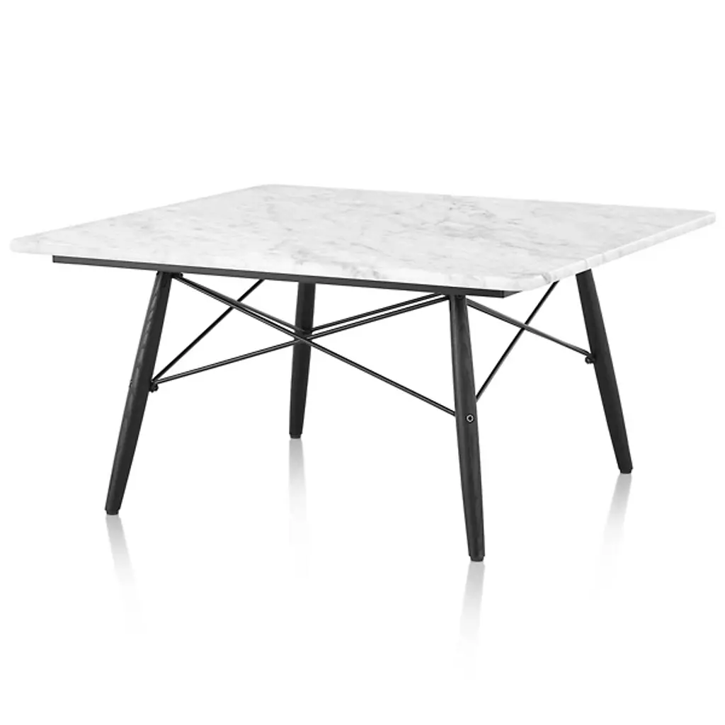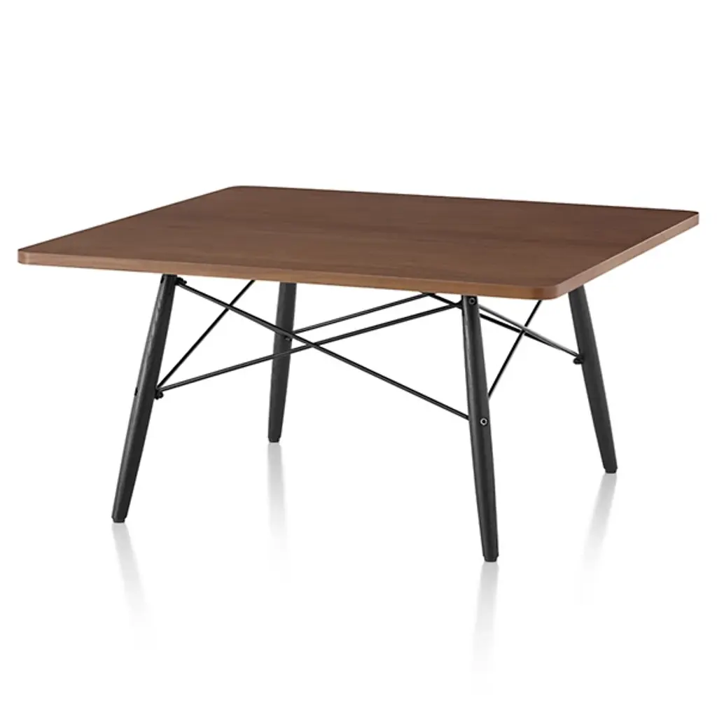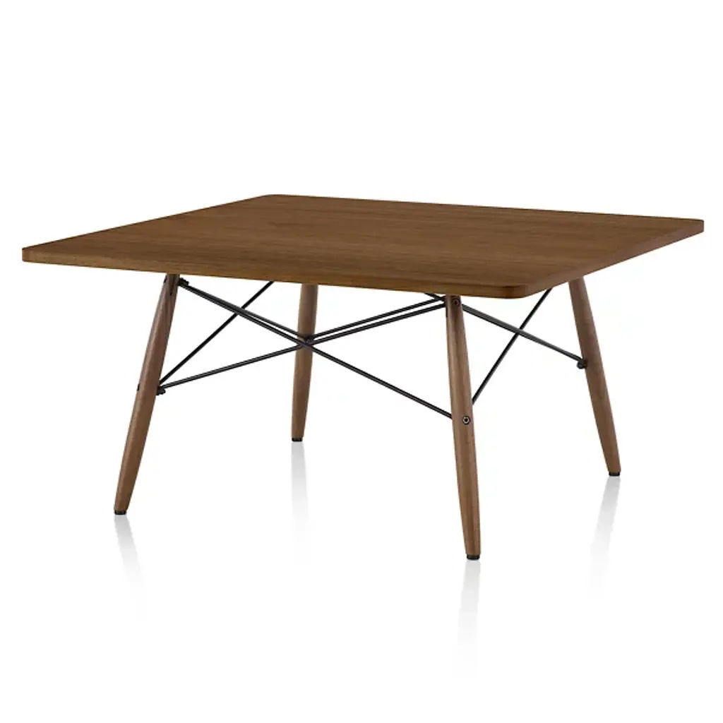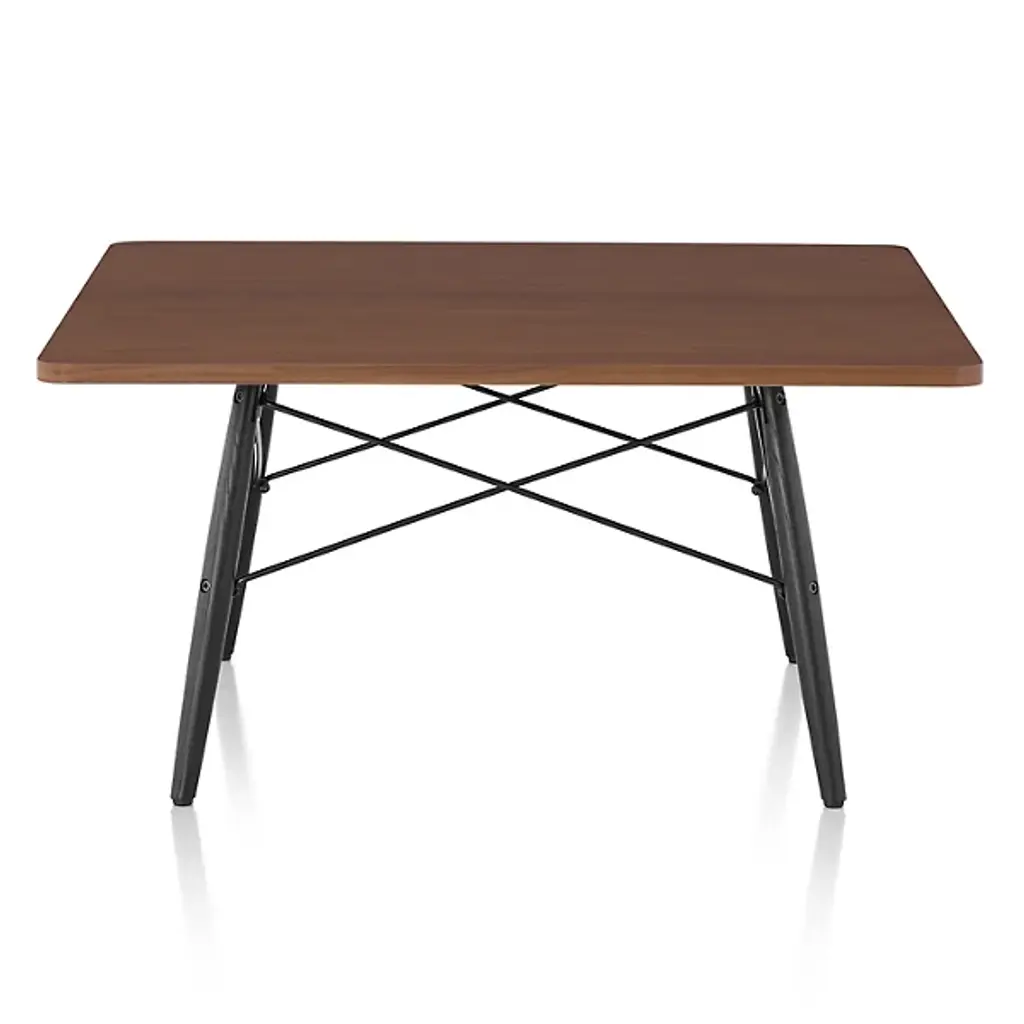 A remake of an iconic design. The sleek and modern Eames® Coffee Table by Herman Miller was invented by legendary designers Charles and Ray Eames for their home in Pacific Palisades. Its wooden base features metal cross-struts to create an eye-catching, ultra-contemporary aesthetic. Choose between its original rectangular top or its modified square top, available in a variety of natural materials and finishes.