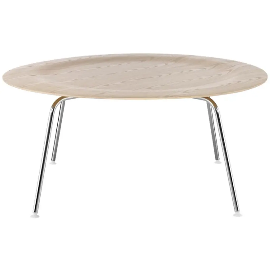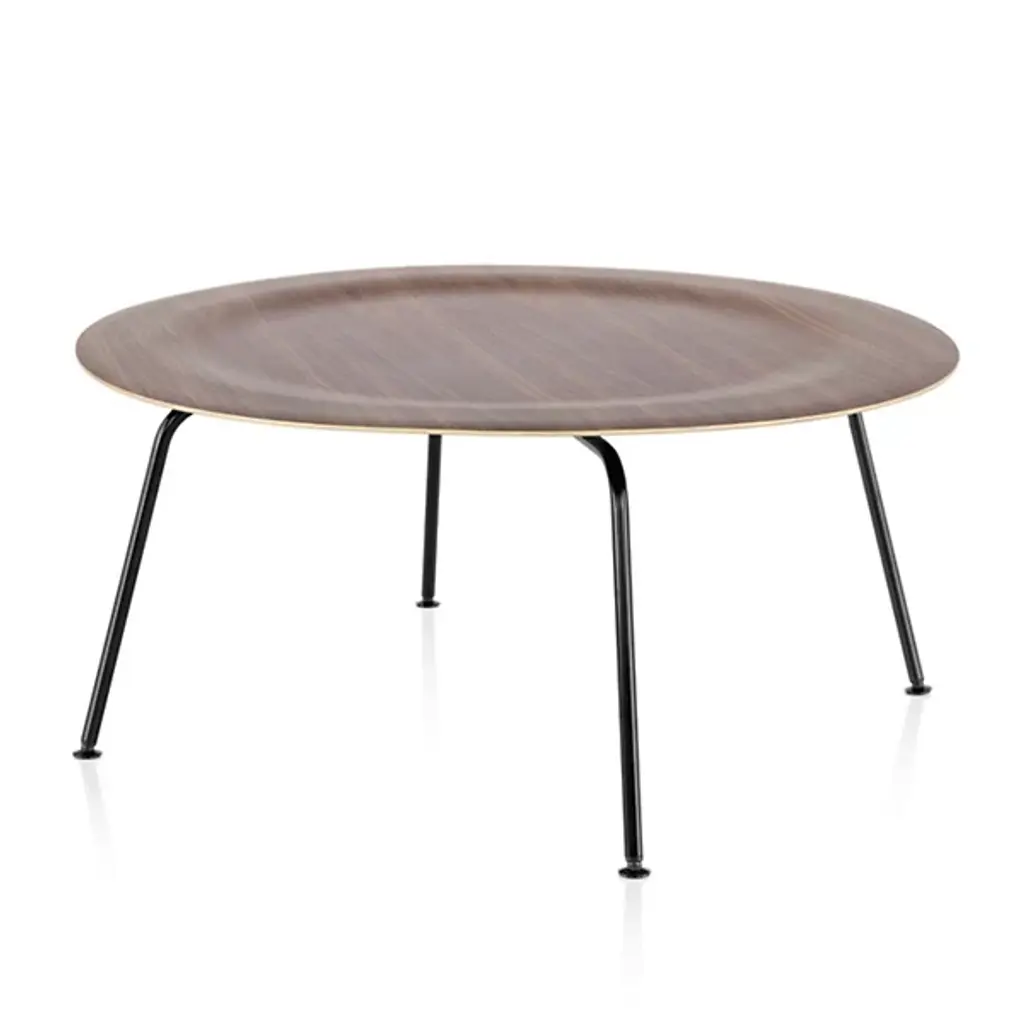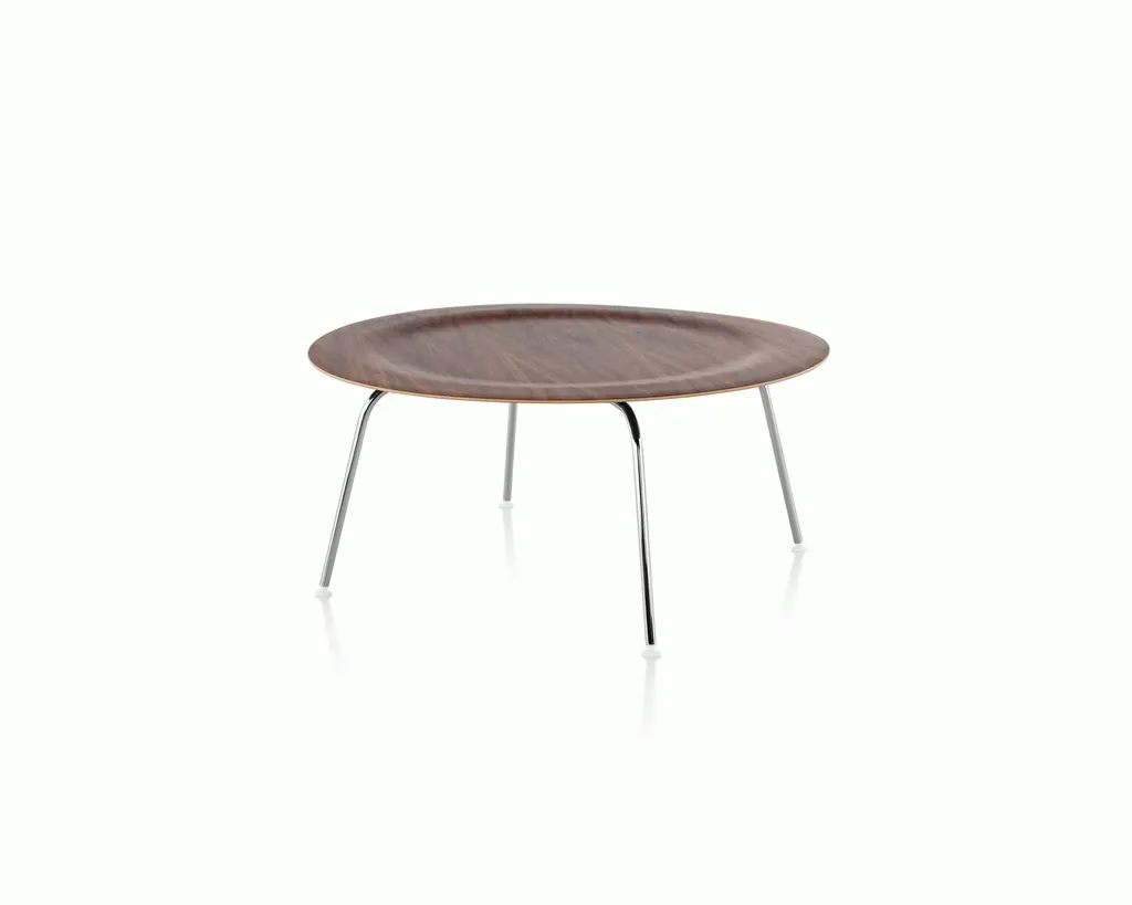 A lovely example of early Charles and Ray Eames design. The Eames® Molded Plywood Coffee Table - Metal Base by Herman Miller® features a round plywood top molded with a slight indent. While designed to fit in seamless with the rest of the Eames Molded Plywood collection, this table is versatile enough to complement any modern (or mid-century modern) living space.
