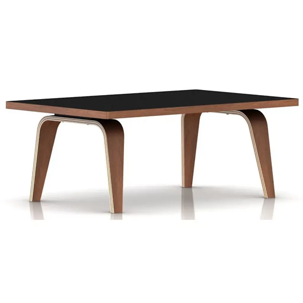 In order to show off the beauty of the materials used to make it, the Eames® Rectangular Coffee Table by Herman Miller® was designed by Charles and Ray Eames with elegant simplicity. It features a rectangular veneer or laminate top atop bent veneer legs. The legs are configured to match the chosen veneer top or the band of veneer around the edge of a laminate top.