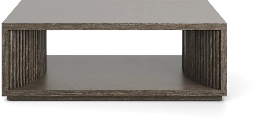 Whether displaying classic literature, a warm cup of tea or a frame that holds a cherished memory, the Eastchester cocktail table welcomes it all with understated confidence and sculptural grace. Contemporary in style, this piece is crafted of cherry veneers in an espresso brown finish and features a sleek rectangular frame and confident silhouette. An open bottom shelf provides ample display space and showcases a subtly curved ribbed interior that adds dimension and visual interest. The plinth base grounds the look with a refined touch while complementing the structured form of the table.