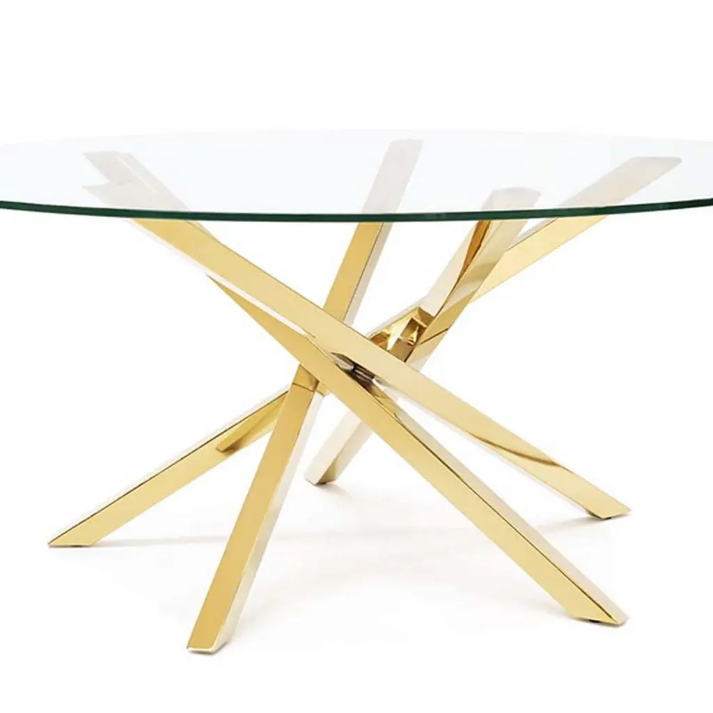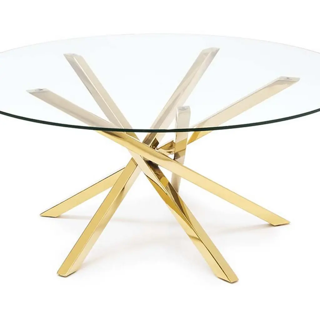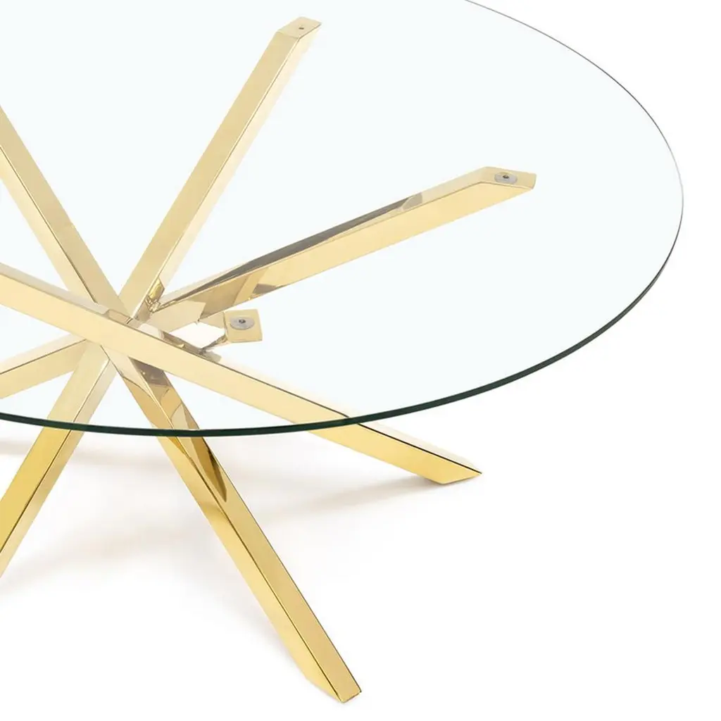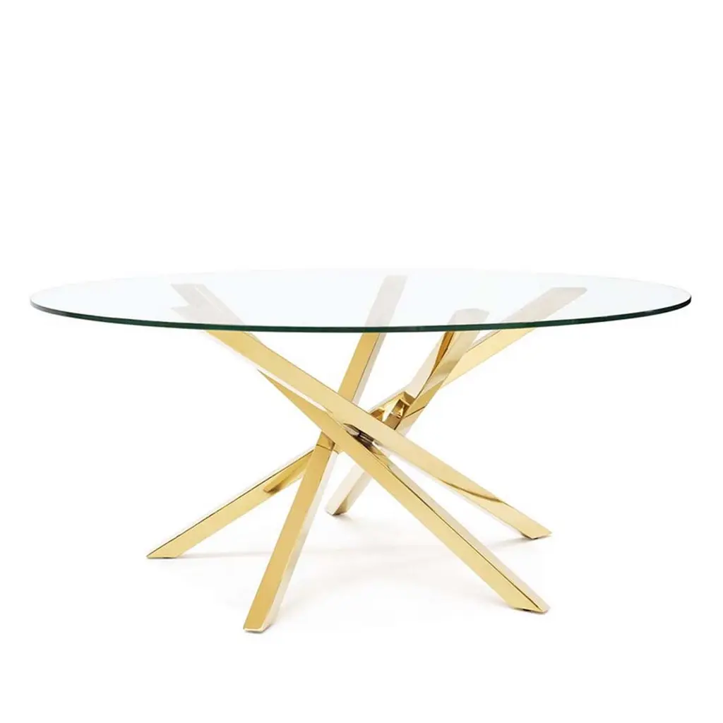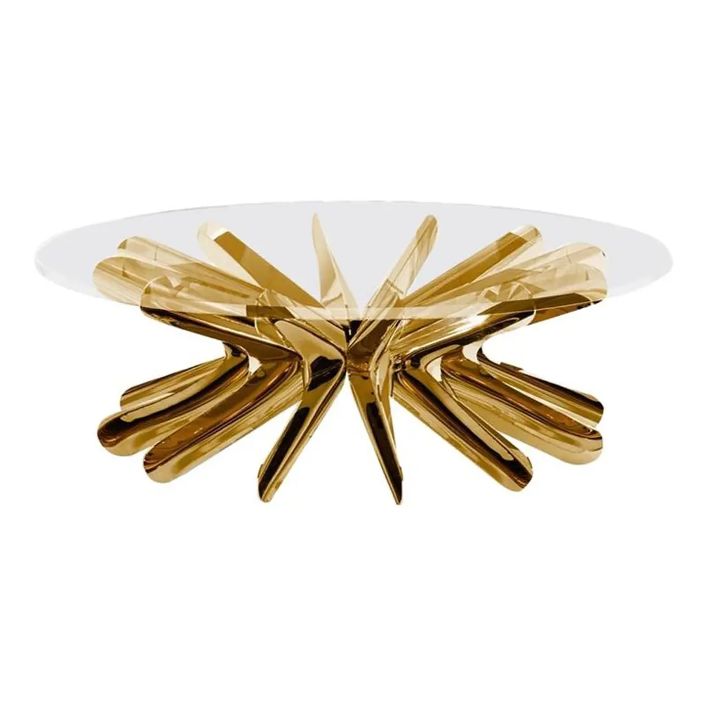 Coffee table eclipse with basein metal in gold finish.With round clear glass top.Also available in side table.