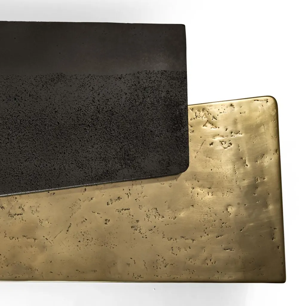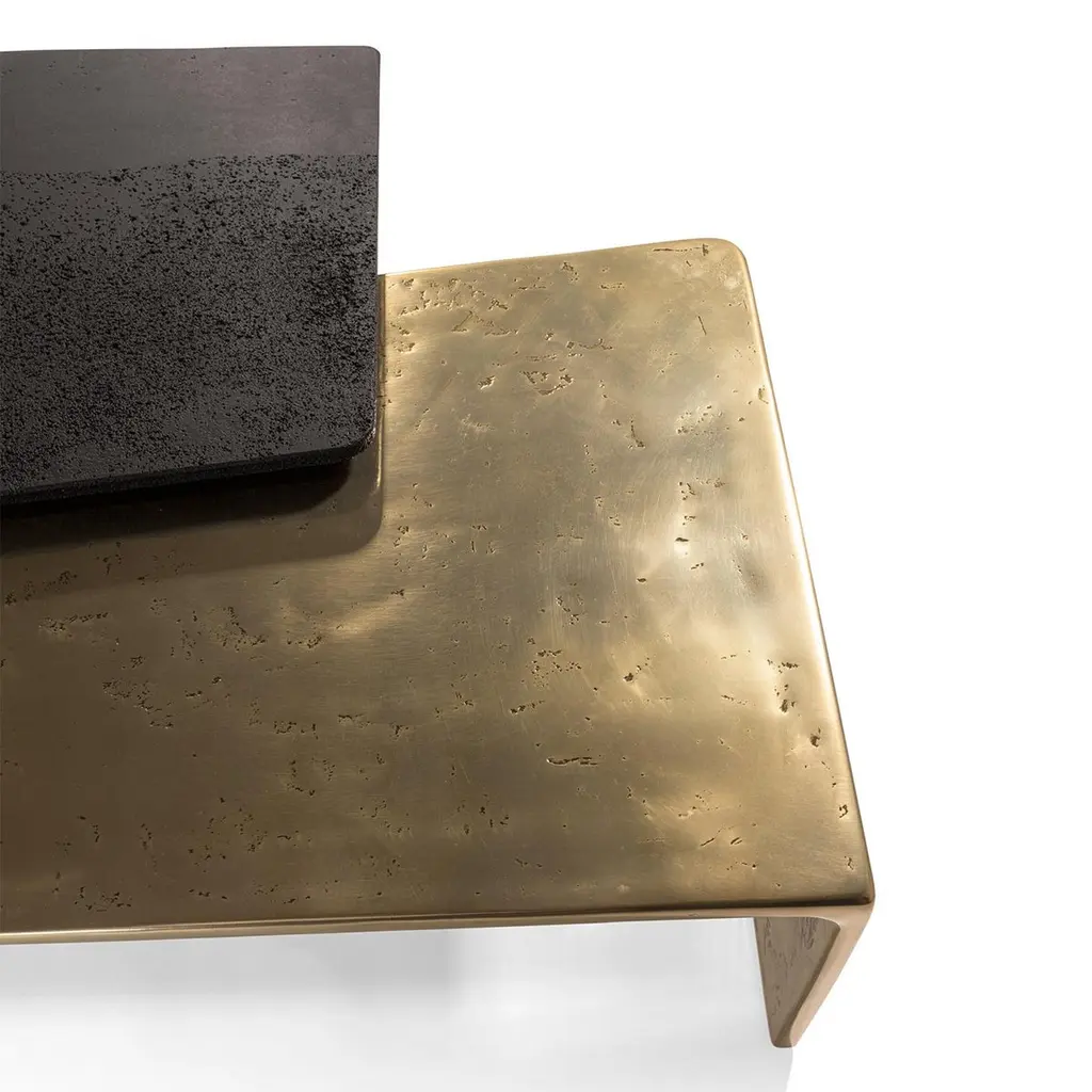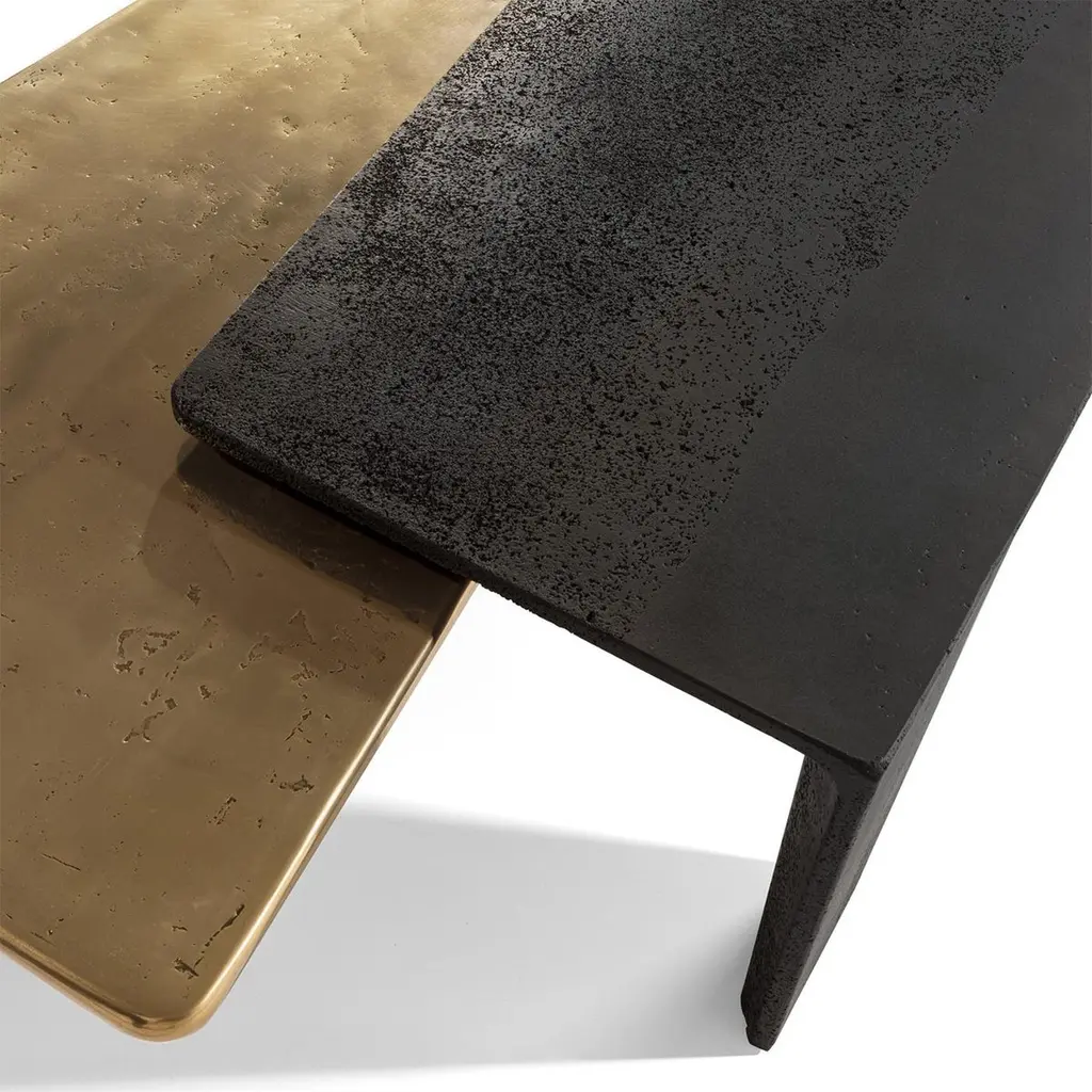 Coffee Table Edena, one part in solid raw casted Aluminium polished and lacquered in gold finish and the other part in concrete in black matt finish.