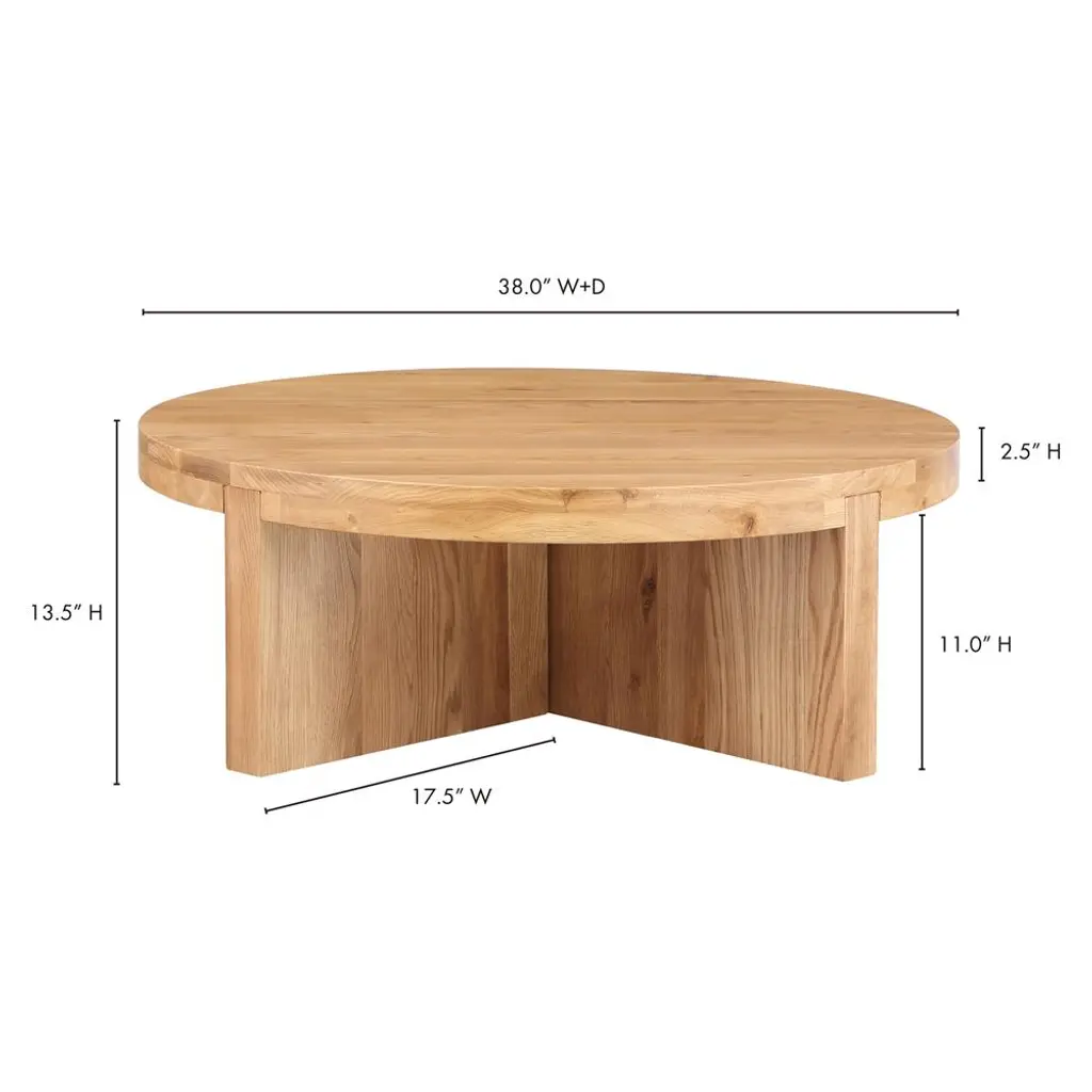 Edgar Rustic Lodge Brown Oak Wood Round Coffee Table