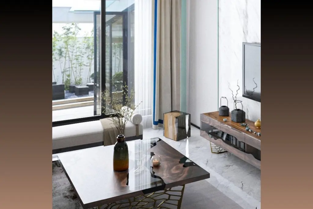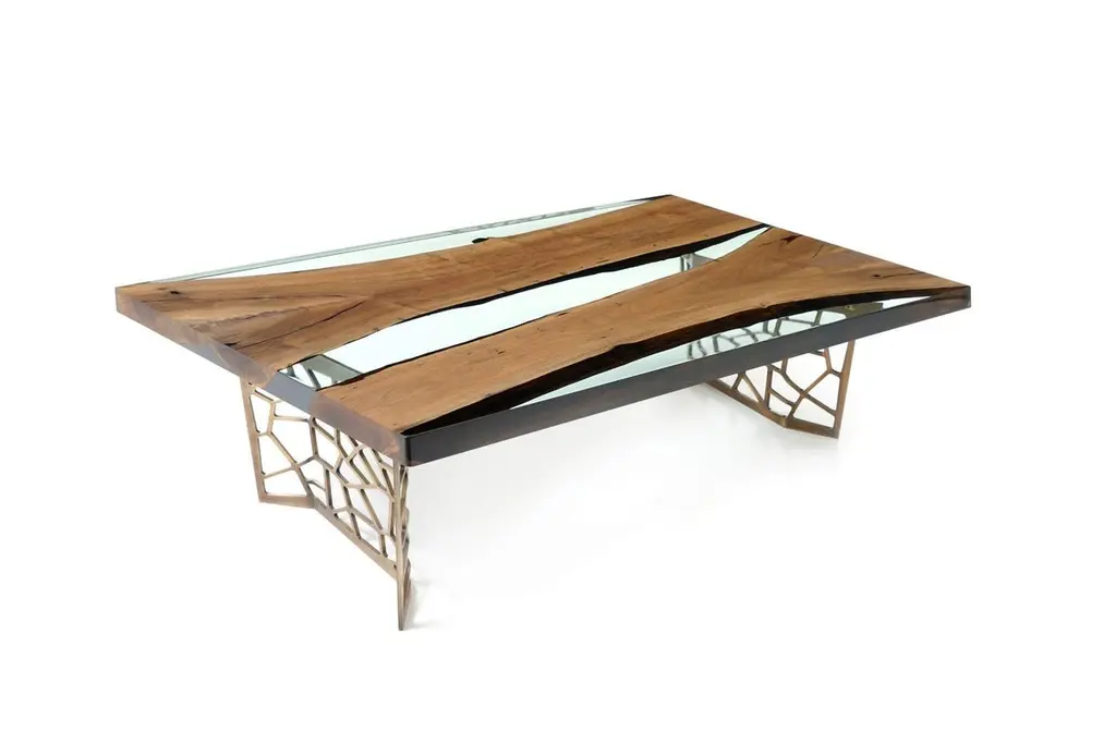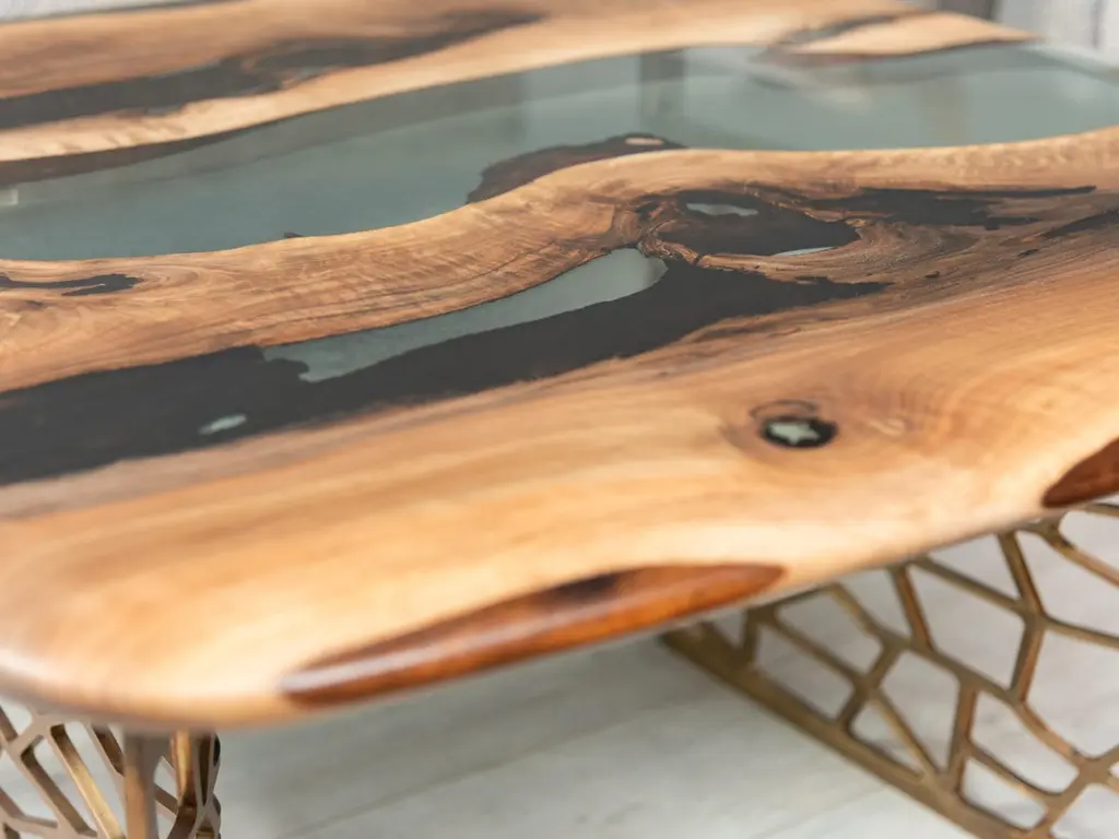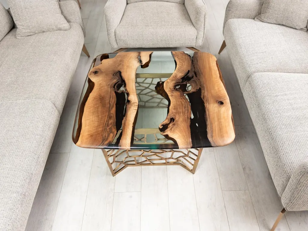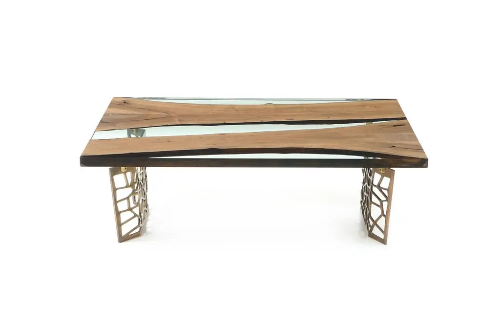 Introducing the EFIL coffee table - a perfect addition to any living space. This table is crafted from high-quality walnut wood and finished with crystal clear resin epoxy, making it both durable and stylish. The aluminum gold-plated legs add an elegant touch to the design, while the eased edge table top provides a comfortable and functional surface. Elevate your home decor instantly with the EFIL coffee table today.Our products are customizable and made to order with varying materials and finishes. Please note that the cost may vary depending on the level of customization. Lead time will be confirmed upon inquiry.