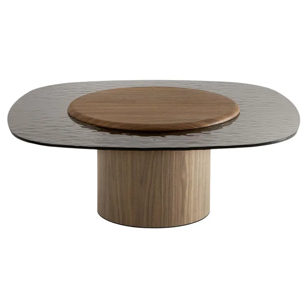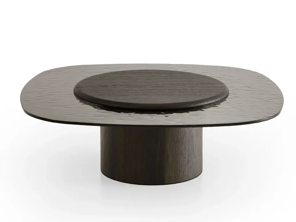 Egg Alto Coffee Table With Laguna Oak Base & Top + Hammered Glass