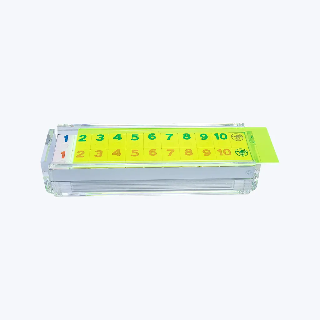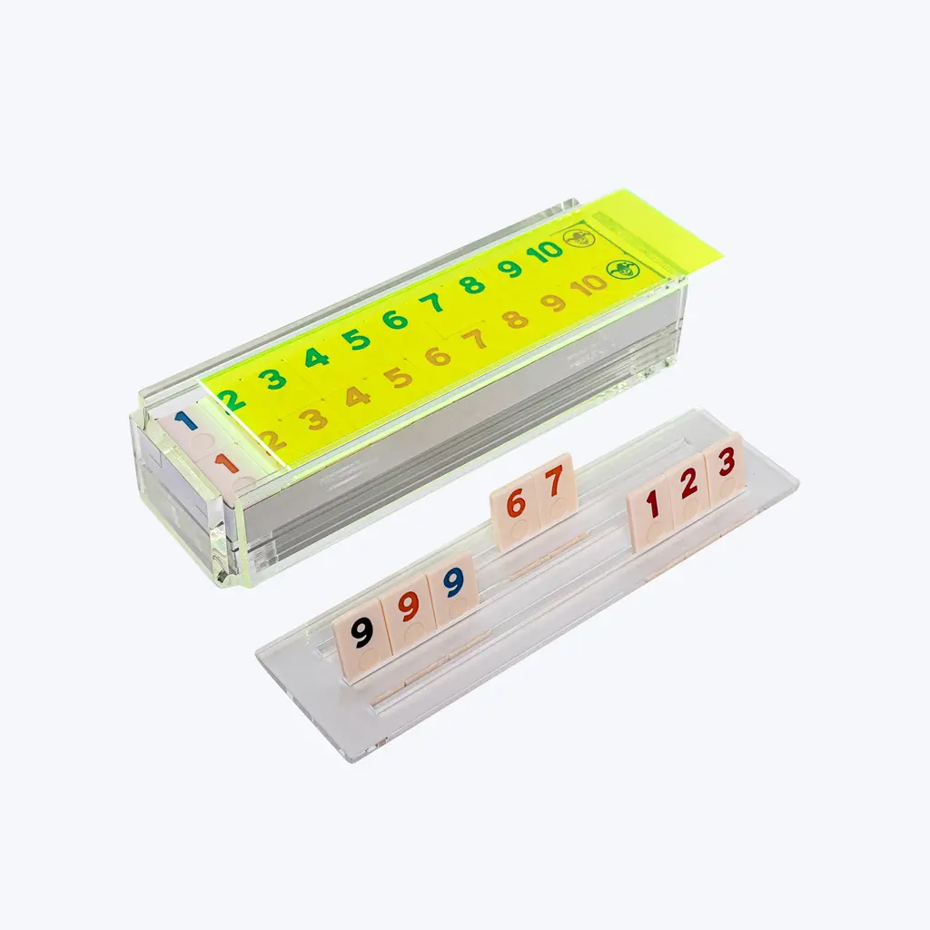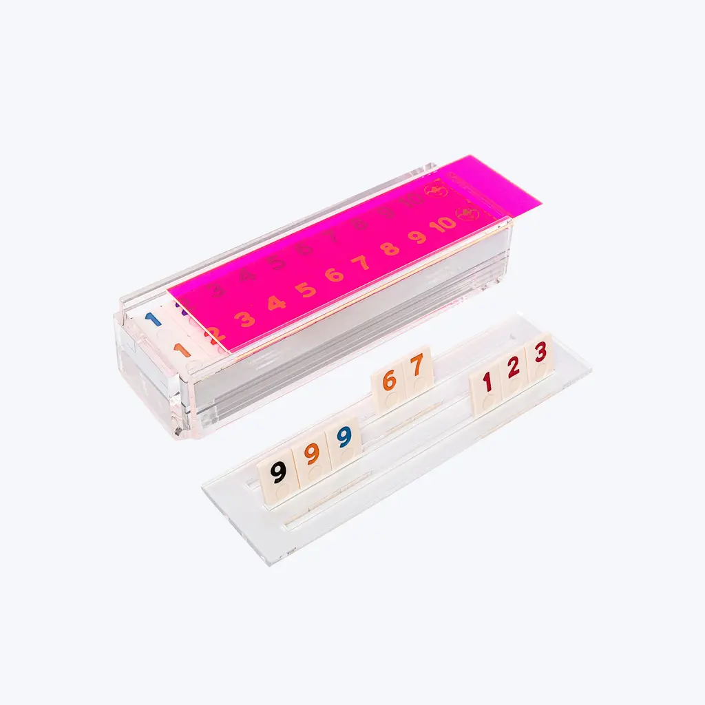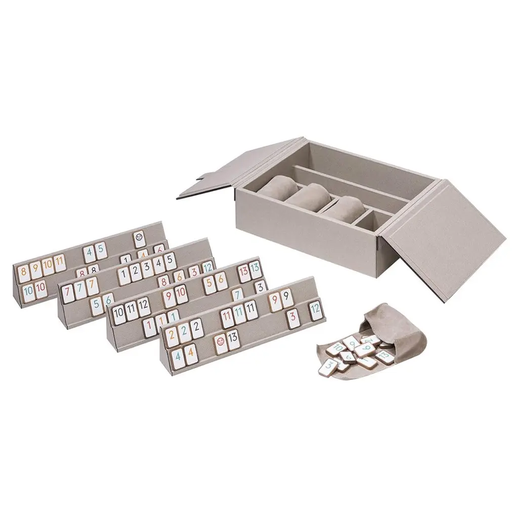 A modern upgrade to a classic game, this El Rumi Tile Game Set comes with 4 Racks and 106 Tiles including 2 Jokers. Made with a matching rack to give your set a pop of color! A beautiful display to leave out on your coffee table and aesthetically pleasing while you play at your next game night. This game is also known as Rummy Cube or Rummy Q. The original game by Pressman is called Rummikub®.