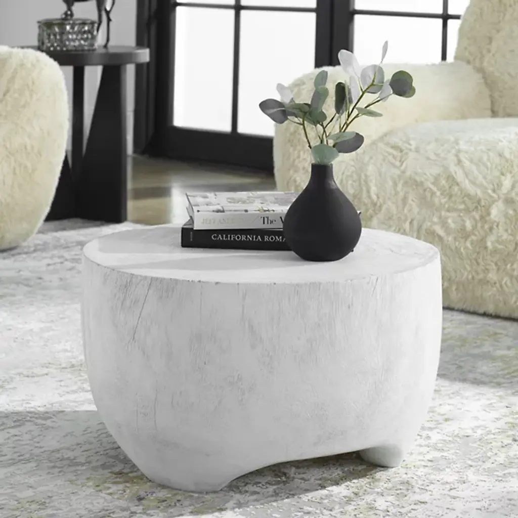 The Elevate Coffee Table from Uttermost showcases exquisite craftsmanship with its hand-carved suar wood composition, sculpted into a distinctive shape that captivates the eye. Its rich surfacing accentuates the natural textured woodgrain, adding depth and character to the piece. The design uses the imperfections inherent to suar wood, showing cracks and variations in the grain to create artisanal charm that enhances its allure, representing a commitment to timeless design and exceptional quality.