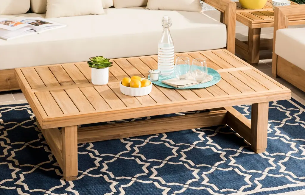 Entertain with ease with this contemporary coffee table. Designed for the modern tastemaker, its clean lines and solid wood construction combine style and substance in any outdoor living area. Its neutral upholstery blends into any décor.