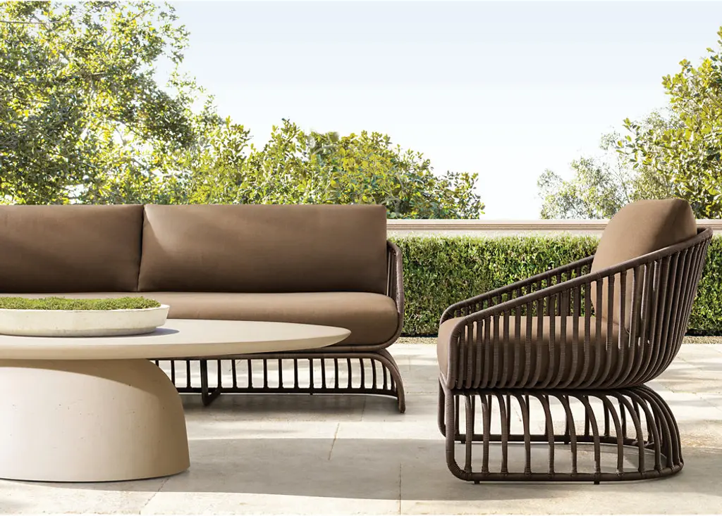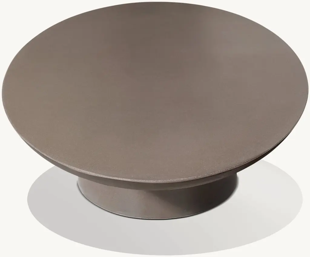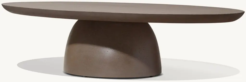 Two elliptical forms seem to balance, one atop the other, in a stunning sculptural silhouette by designer Ann Marie Vering. Echoing postmodern architecture, the bold coffee table is crafted from concrete using custom molds to shape the smooth contours and crisp surfaces of each piece. The geometric objects converge to create a dynamic tension and sense of movement.