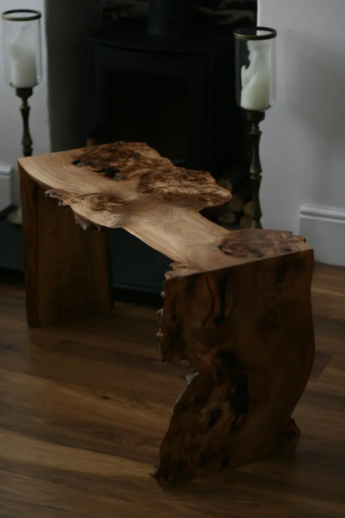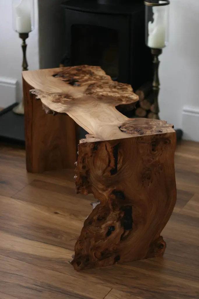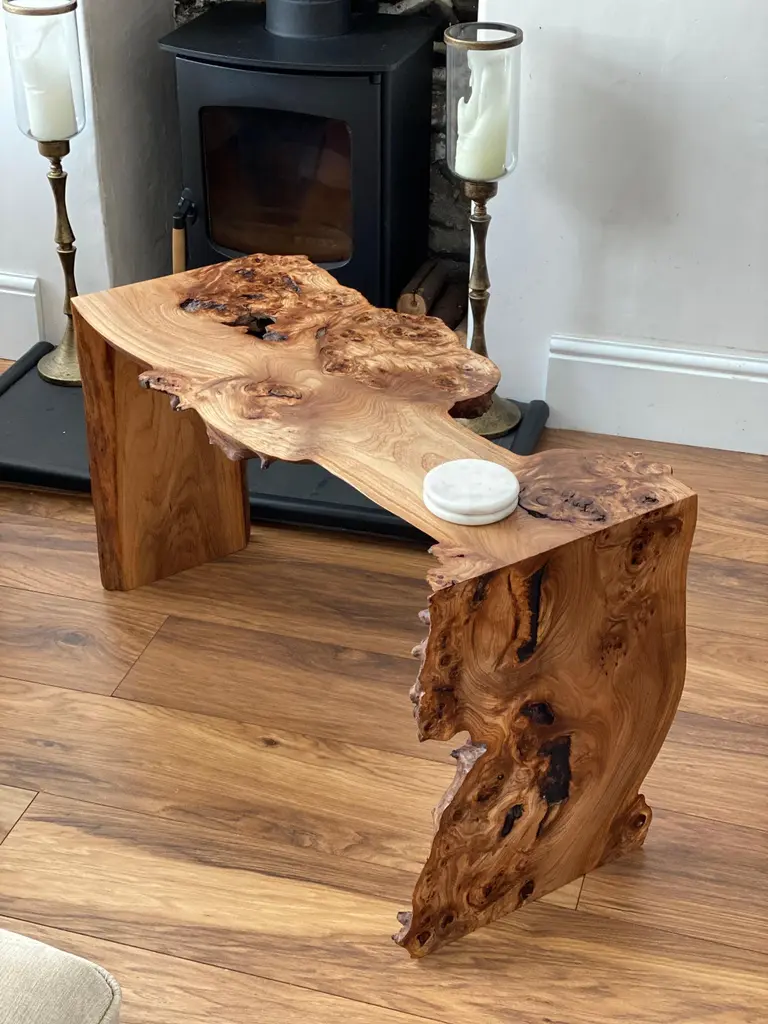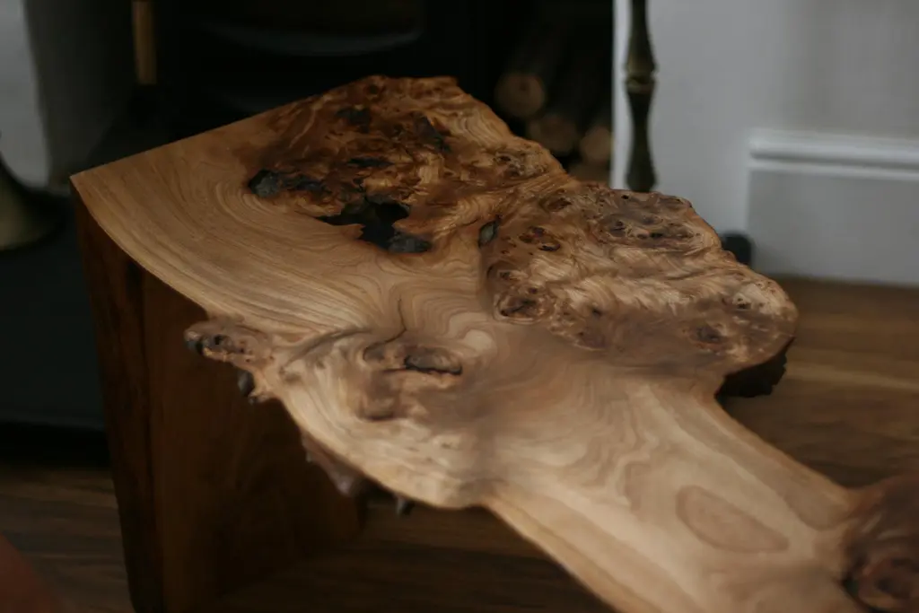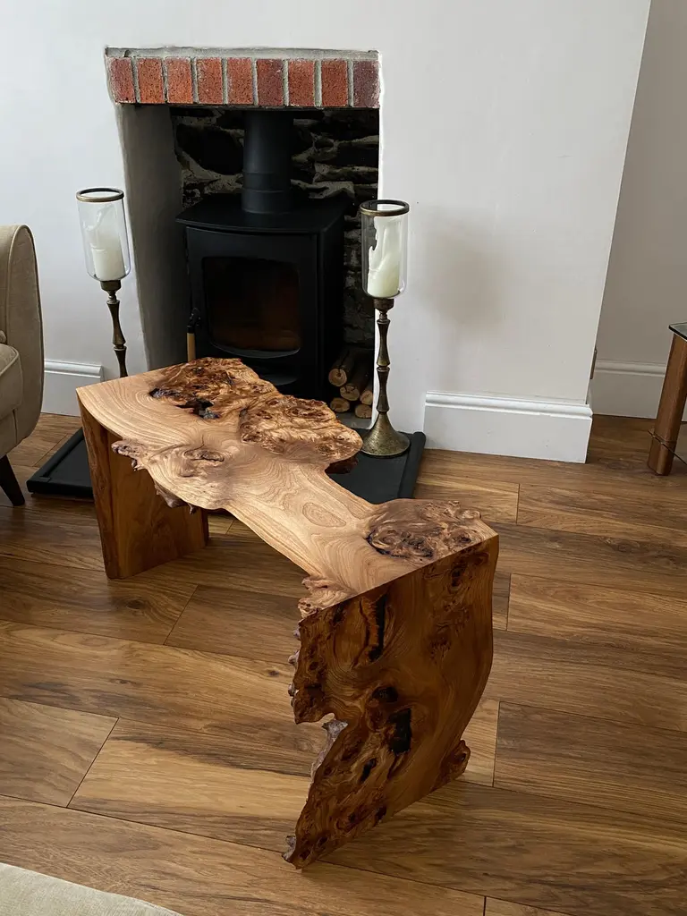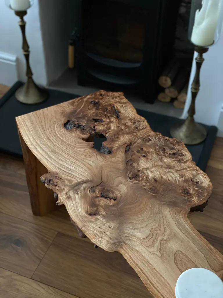 Made from one very special slab of waney edge / live edge burr Elm, the slab is cut into three pieces and re-joined at 45 degree angles to achieve the waterfall effect in which the grain falls from one side to the next with the grain lining up and continuing throughout.This is finished in a hard wax oil combination for a subtle sheen,This can also be made in any wood type or finish, and can be made to any dimension / measurement.Every item is made-to-order so is quality checked profusely prior to crating and shipping, therefore returns are only accepted under the circumstances something has gone seriously wrong and the material used by ourselves has somehow failed. Out of the sale price, we pay for professional crating and this has been successful every single time.
