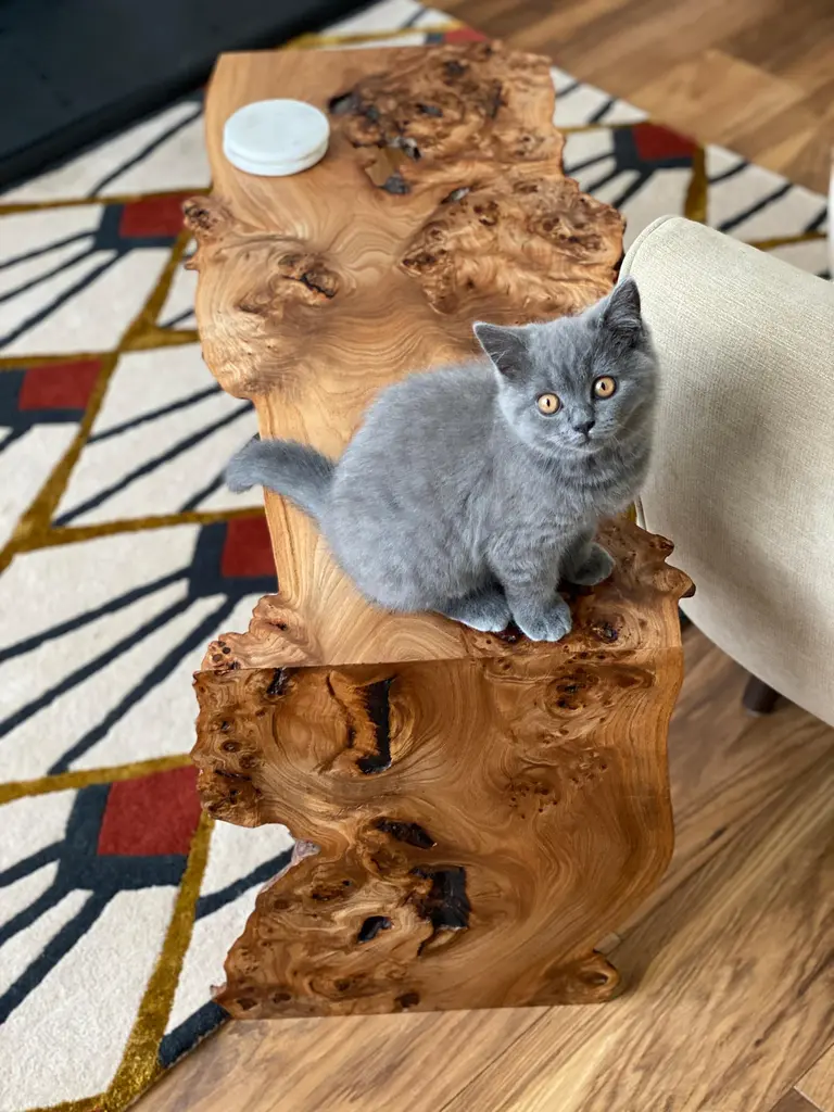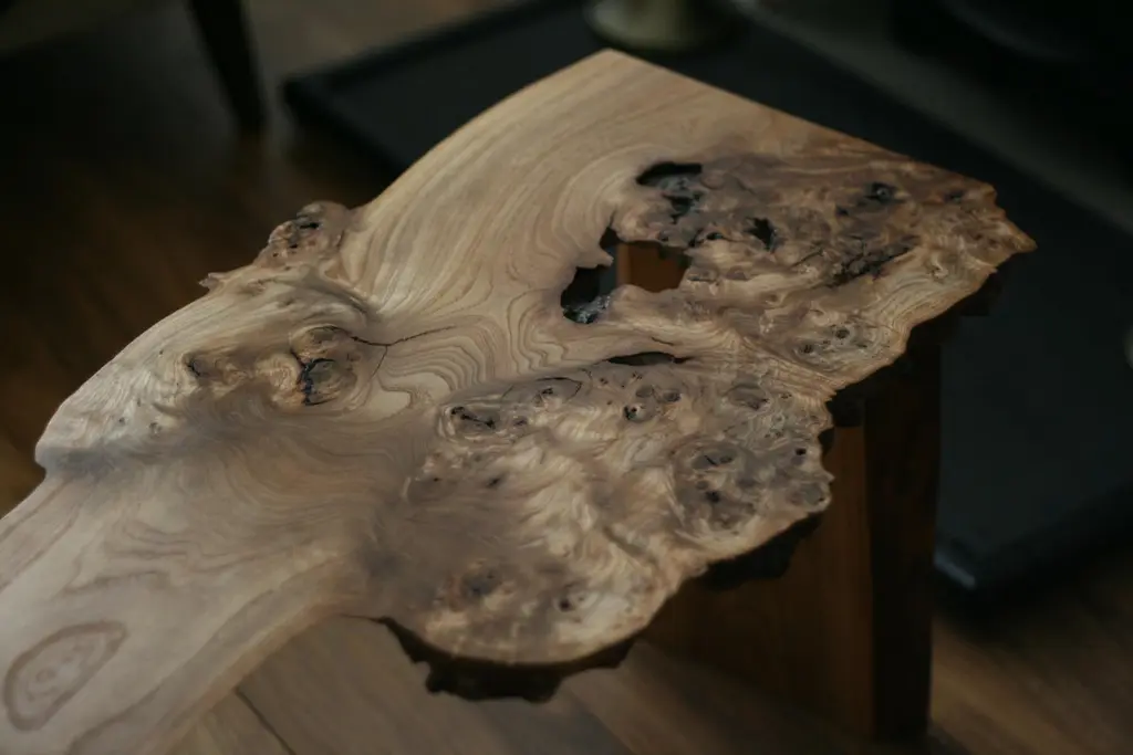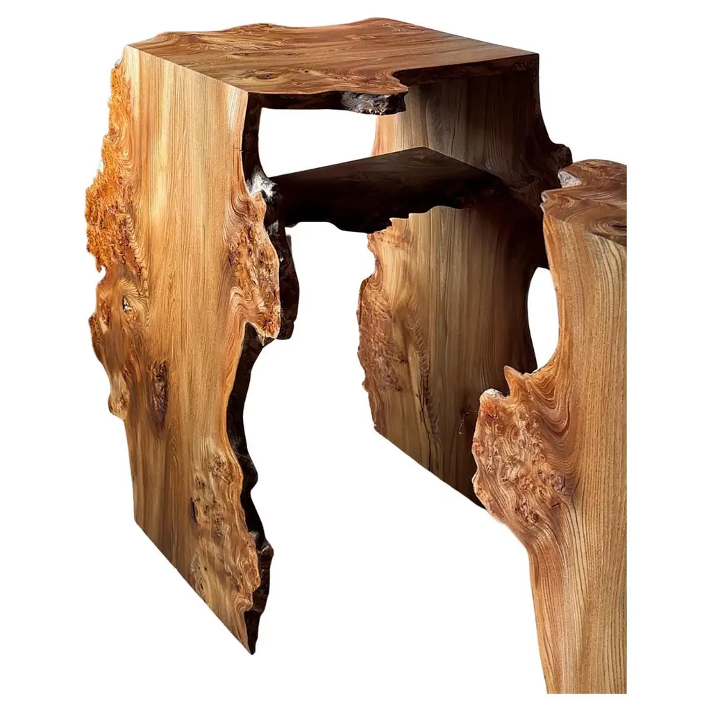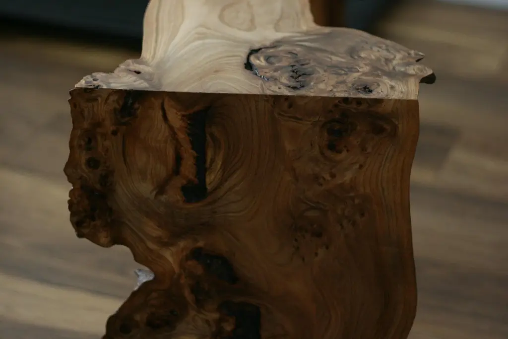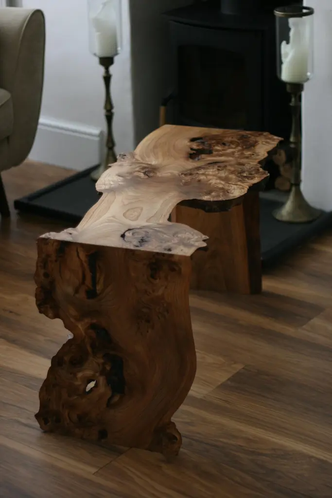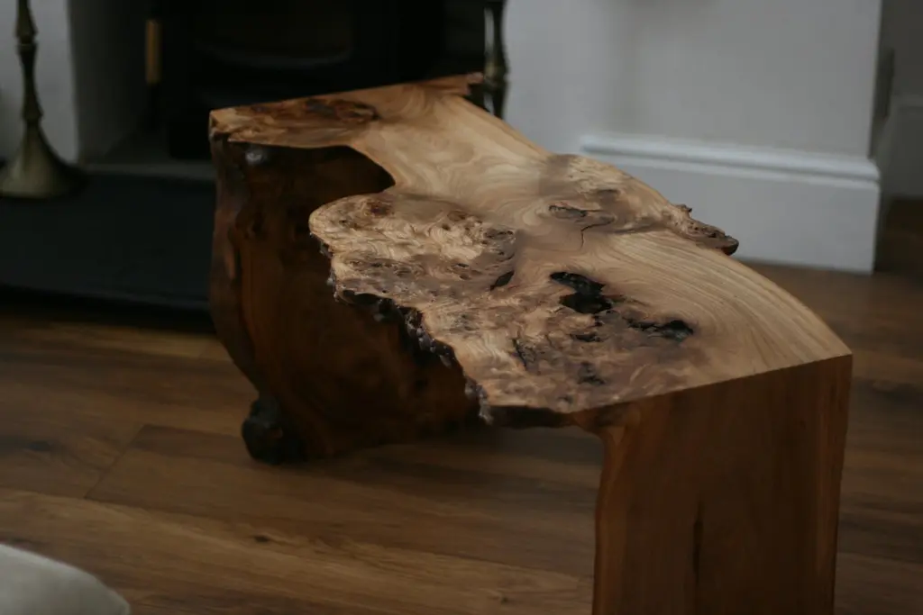 Made from one very special slab of waney edge / live edge burr Elm, the slab is cut into three pieces and re-joined at 45 degree angles to achieve the waterfall effect in which the grain falls from one side to the next with the grain lining up and continuing throughout.This is finished in a hard wax oil combination for a subtle sheen,This can also be made in any wood type or finish, and can be made to any dimension / measurement.Every item is made-to-order so is quality checked profusely prior to crating and shipping, therefore returns are only accepted under the circumstances something has gone seriously wrong and the material used by ourselves has somehow failed. Out of the sale price, we pay for professional crating and this has been successful every single time.