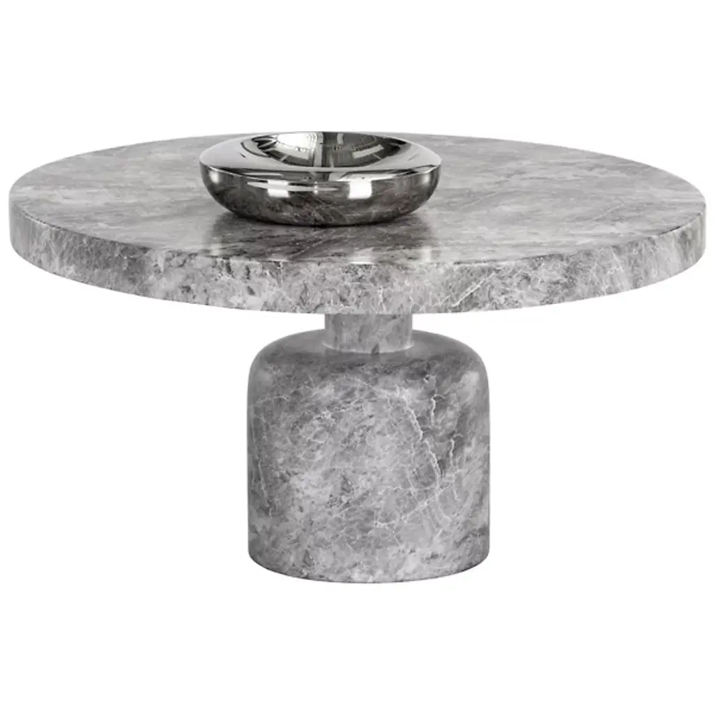 The Elmira Coffee Table from Sunpan indulges in timeless elegance, boasting a design that's sure to impress. Its round tabletop is complemented by a gracefully curved table base, all fashioned from a matching grey faux marble finished concrete. For a complete look, don't forget to explore the coordinating end table. This ensemble will bring a touch of sophistication to your living space, creating a stylish and harmonious ambiance.